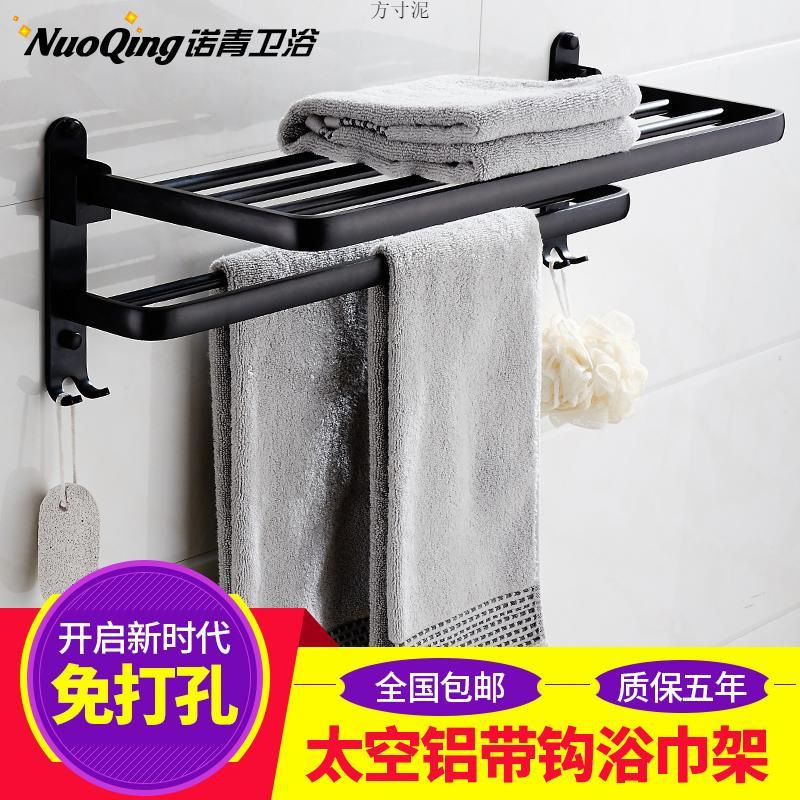수건 랙 펀치없는 공간 알루미늄 욕실 보관 랙 욕실 화장실 검은 수건 랙 벽 교수형