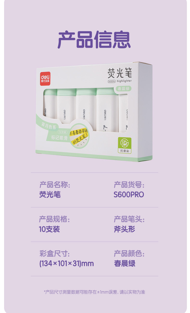 델리 S600PRO 안티 블루밍 플랫 로드 하이 라이터 Ji Yue 컬러 학생 시험 키 눈길을 끄는 마킹 펜스토어 가기
