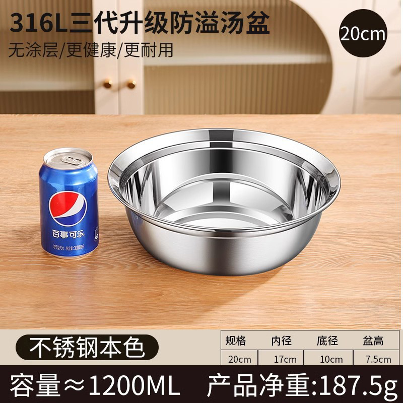 두꺼운 식품 등급 316 스테인레스 스틸 그릇과 접시 가정용 심화 둥근 경 사진 가장자리 유출 방지 작은 수프 분지 수프 밥 그릇 도매스토어 가기