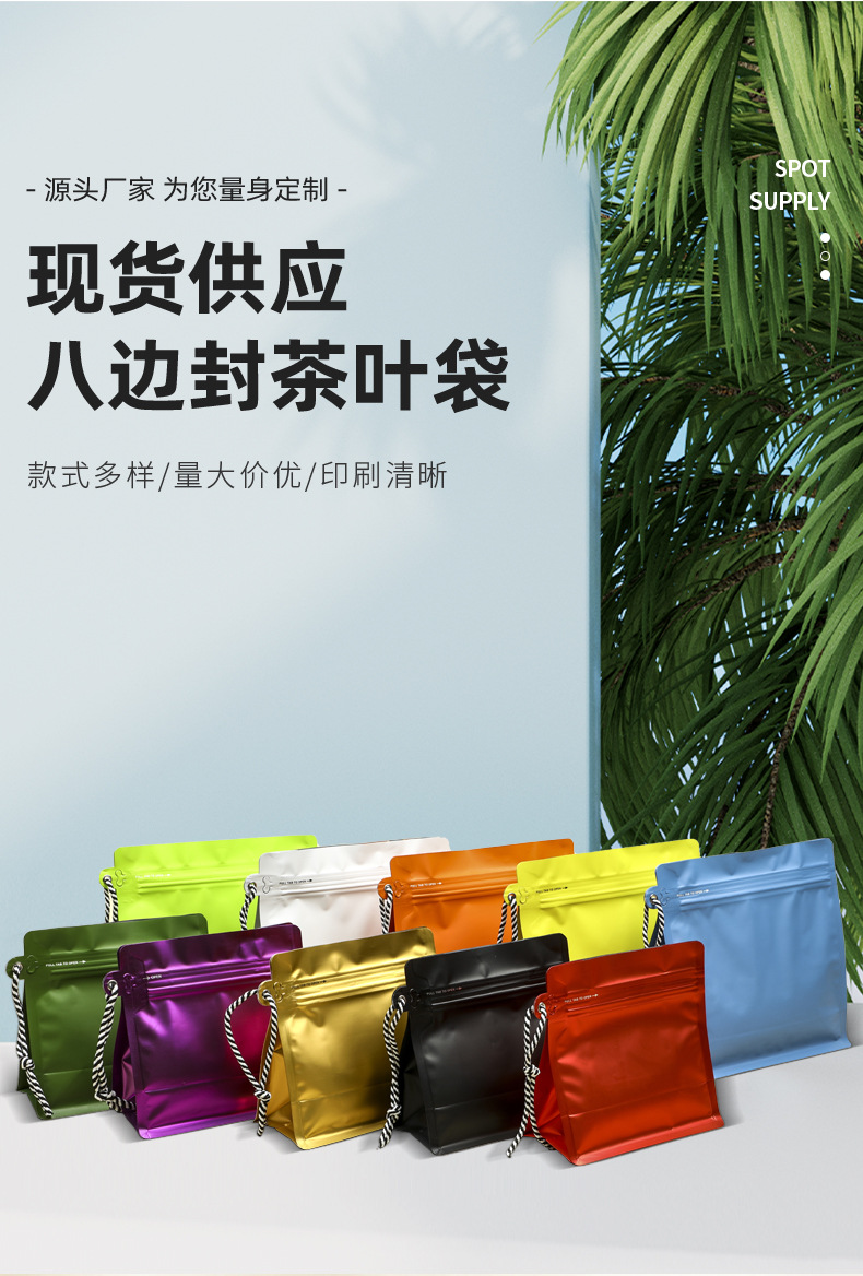 티백 공장 직접 250g 8 면 알루미늄 호일 커피 포장 가방 식품 일방향 배기 밸브 진공 가방