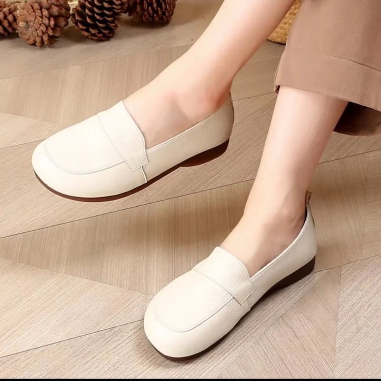 봄과 가을 얕은 여성 신발 부드러운 가죽 부드러운 단독 어머니 신발 캐주얼 편안한 여성 싱글 레이어 신발 플랫 레트로 수제 여성 신발 플러스 사이즈