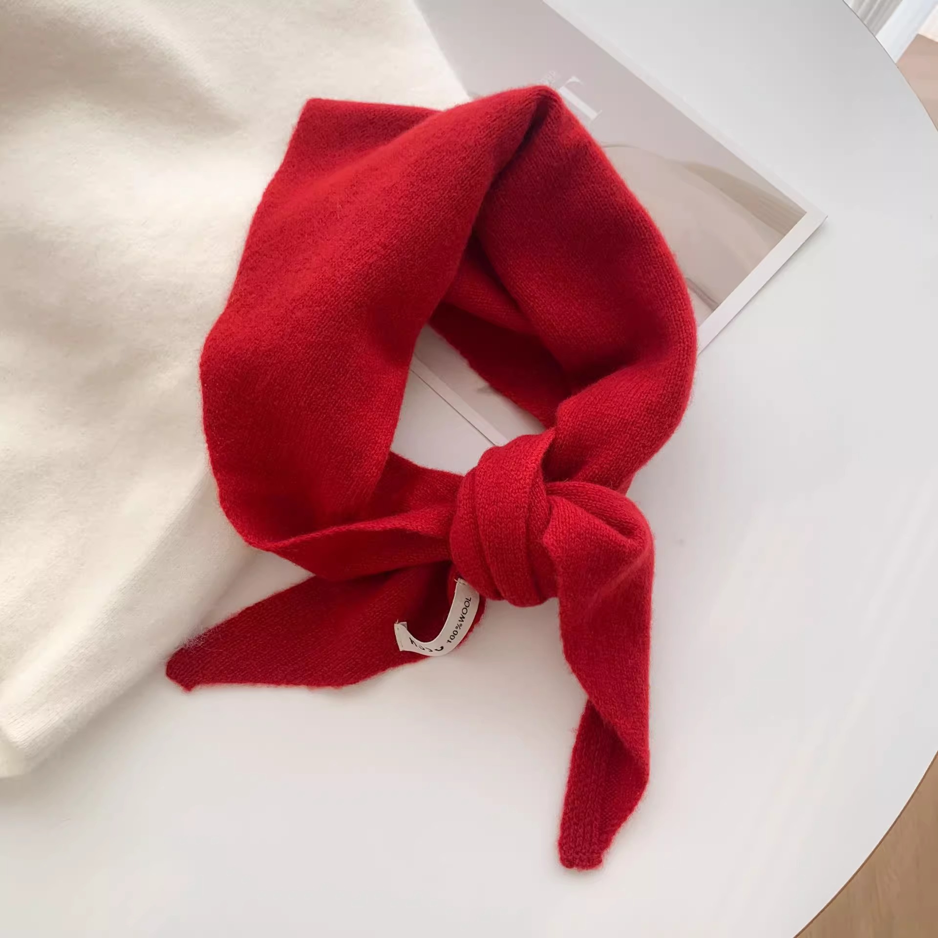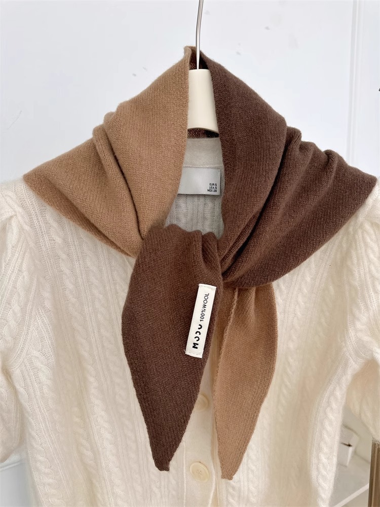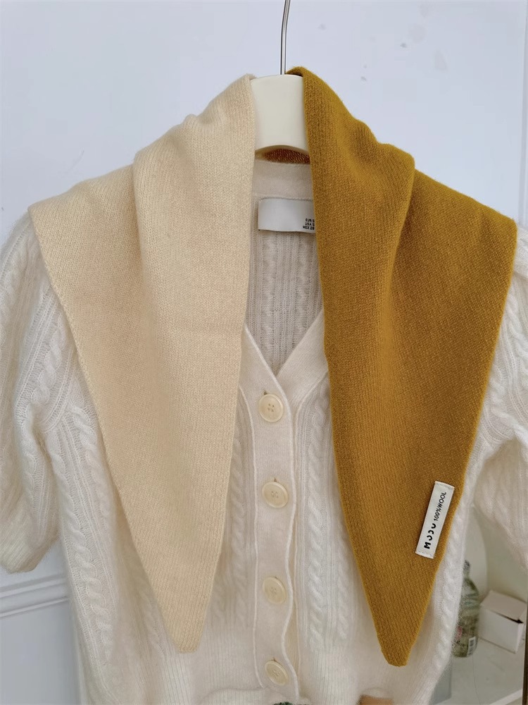 양모 니트 단색 삼각형 스카프 목도리 여성의 가을과 겨울 따뜻한 머리 스카프 여성을위한 다기능 따뜻한 올 매치 작은 스카프