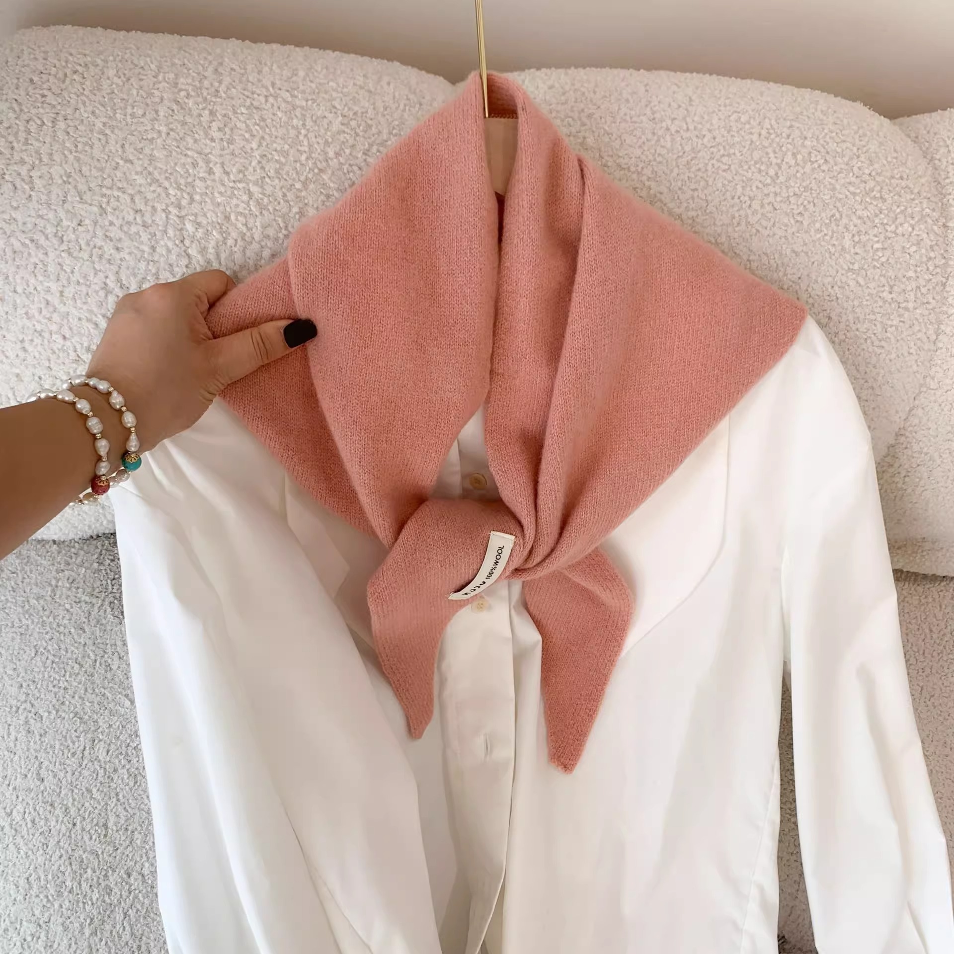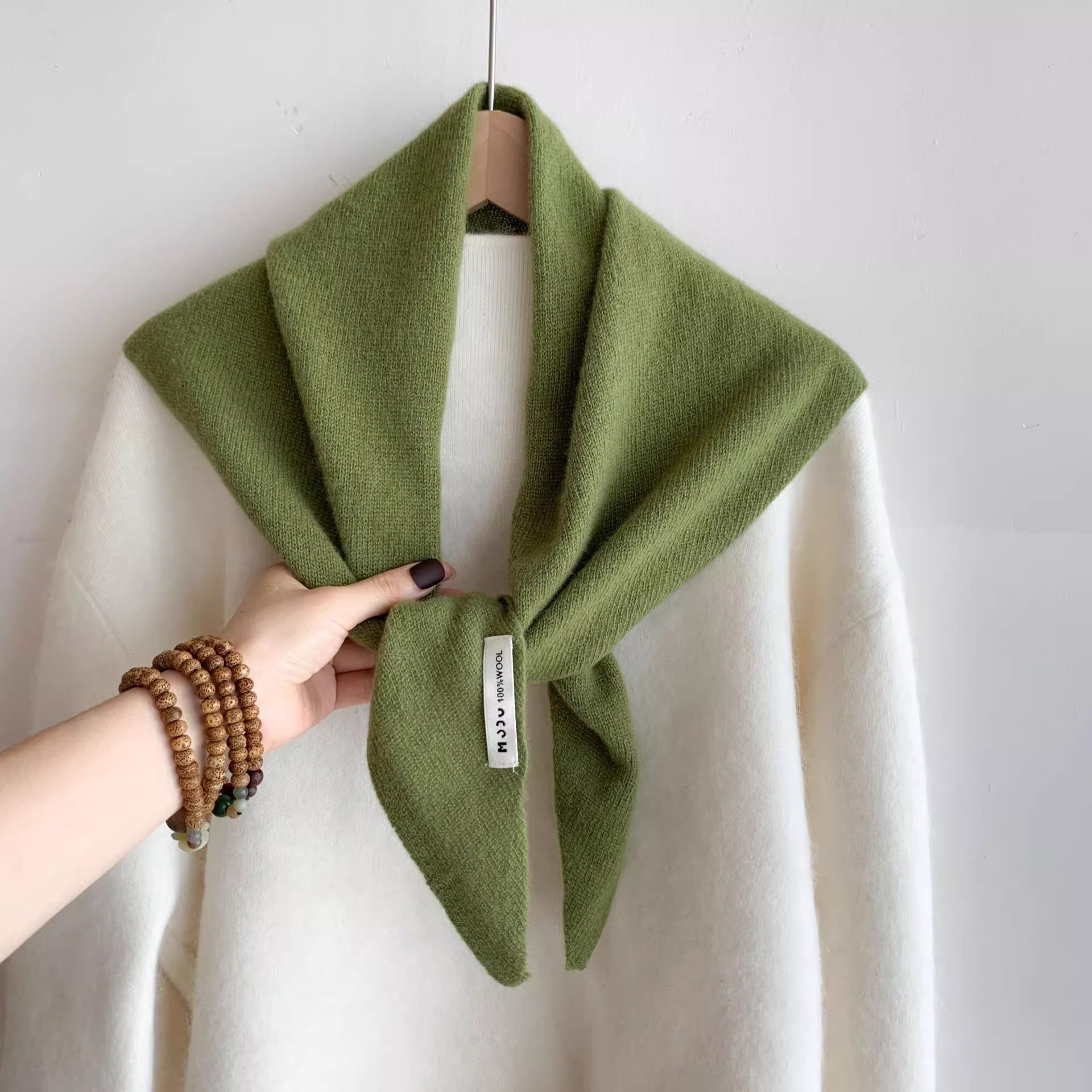 양모 니트 단색 삼각형 스카프 목도리 여성의 가을과 겨울 따뜻한 머리 스카프 여성을위한 다기능 따뜻한 올 매치 작은 스카프스토어 가기