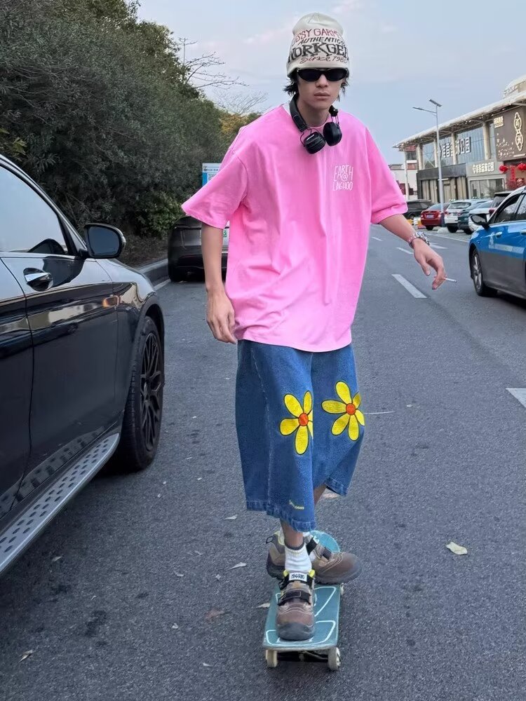 2024 세탁 데님 반바지 남자 여름 얇은 바지 아메리칸 스타일 스트리트 올 매치 루즈 스트레이트 크롭 스포츠 바지