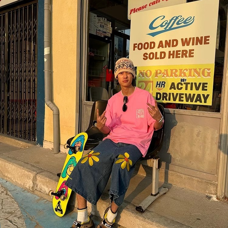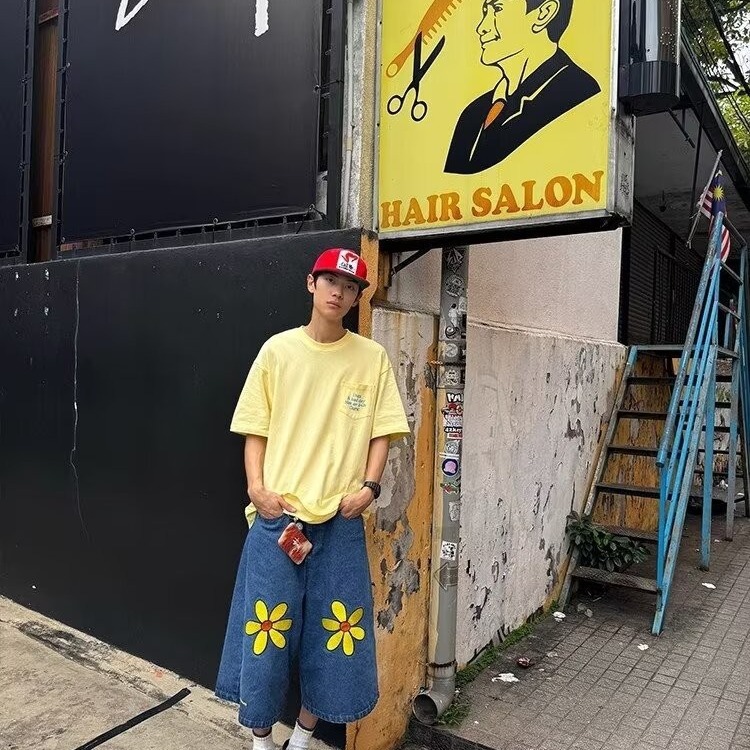 2024 세탁 데님 반바지 남자 여름 얇은 바지 아메리칸 스타일 스트리트 올 매치 루즈 스트레이트 크롭 스포츠 바지스토어 가기