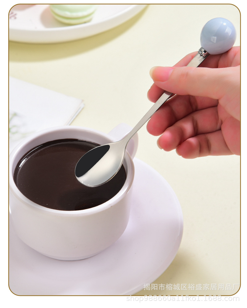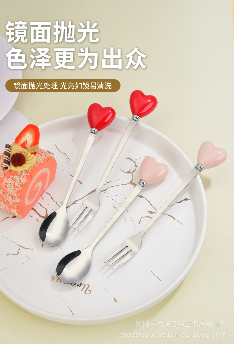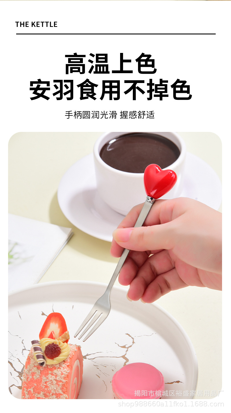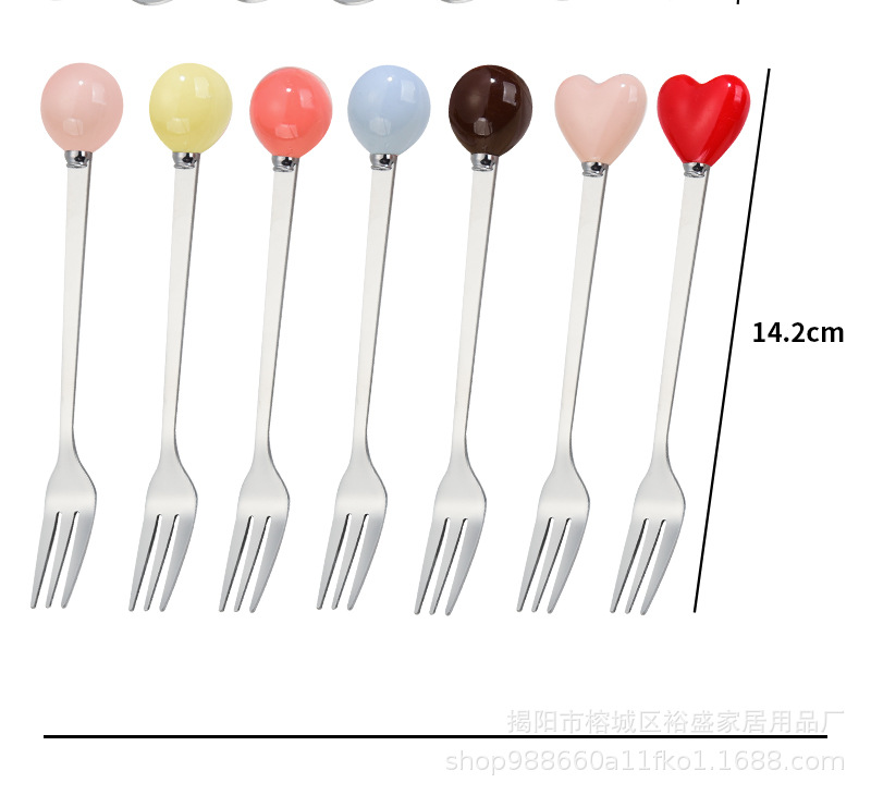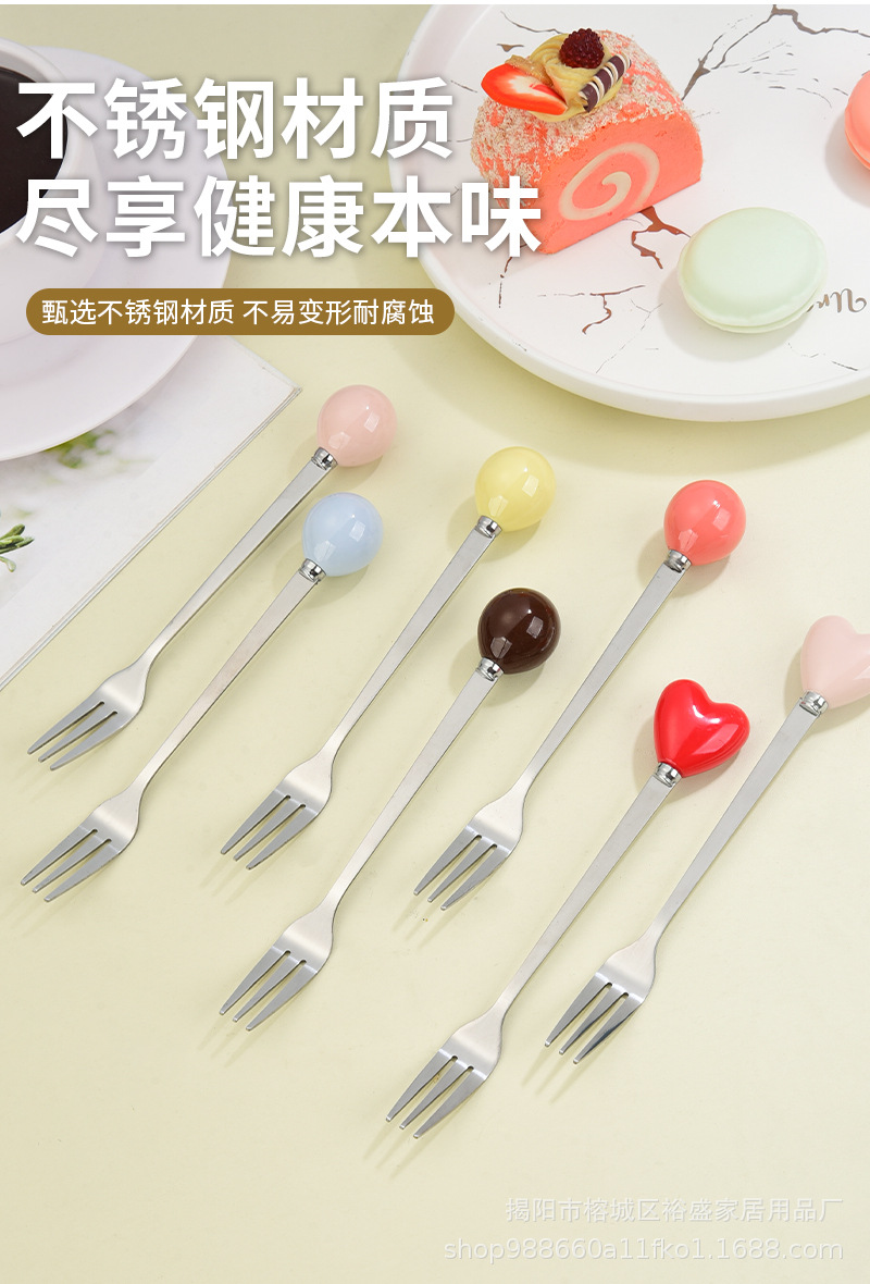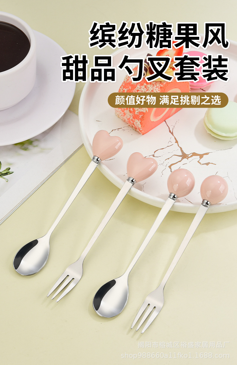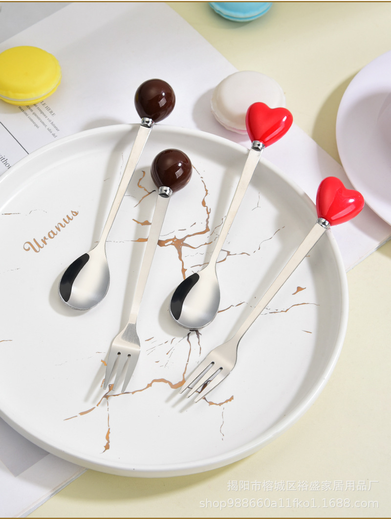 높은 찾고 둥근 공 손잡이 포크 스테인레스 스틸 가정용 스푼 사랑 커피 교반 스푼 크리 에이 티브 디저트 스푼 도매스토어 가기