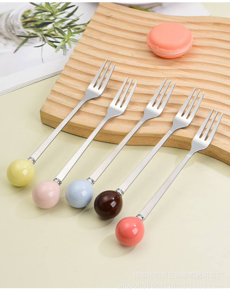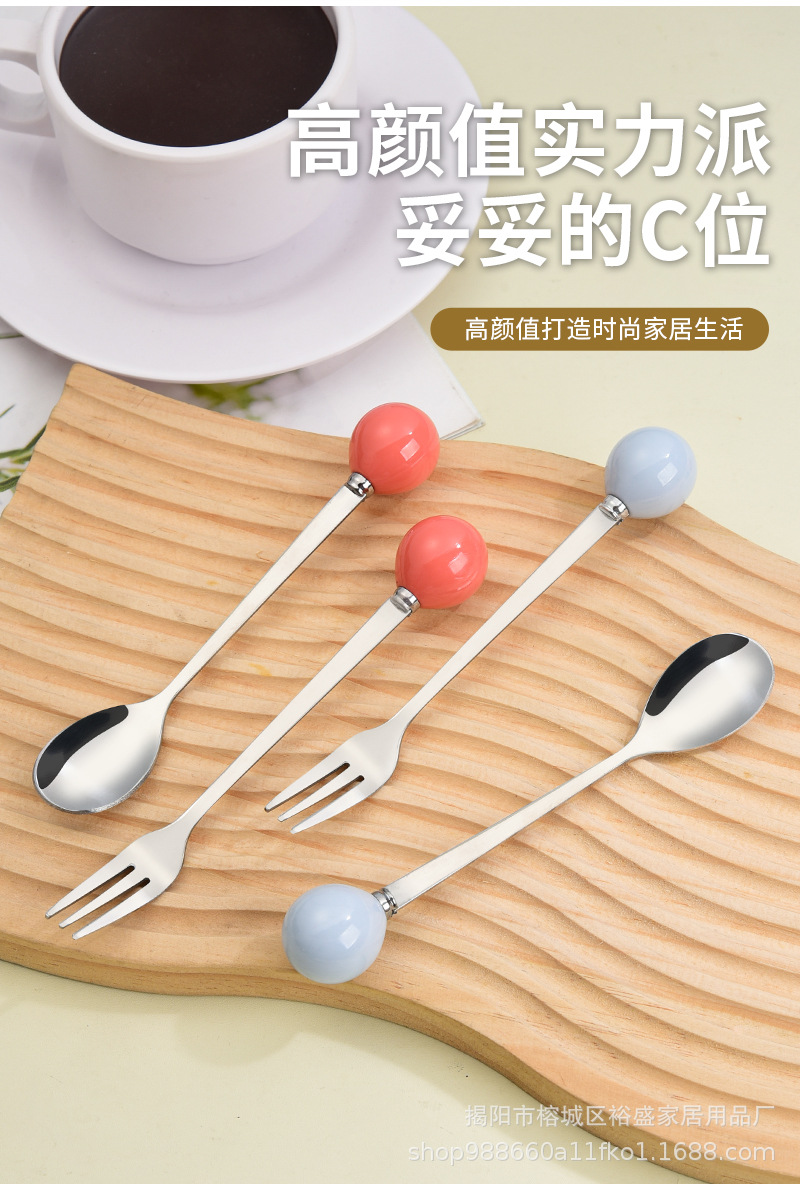 높은 찾고 둥근 공 손잡이 포크 스테인레스 스틸 가정용 스푼 사랑 커피 교반 스푼 크리 에이 티브 디저트 스푼 도매
