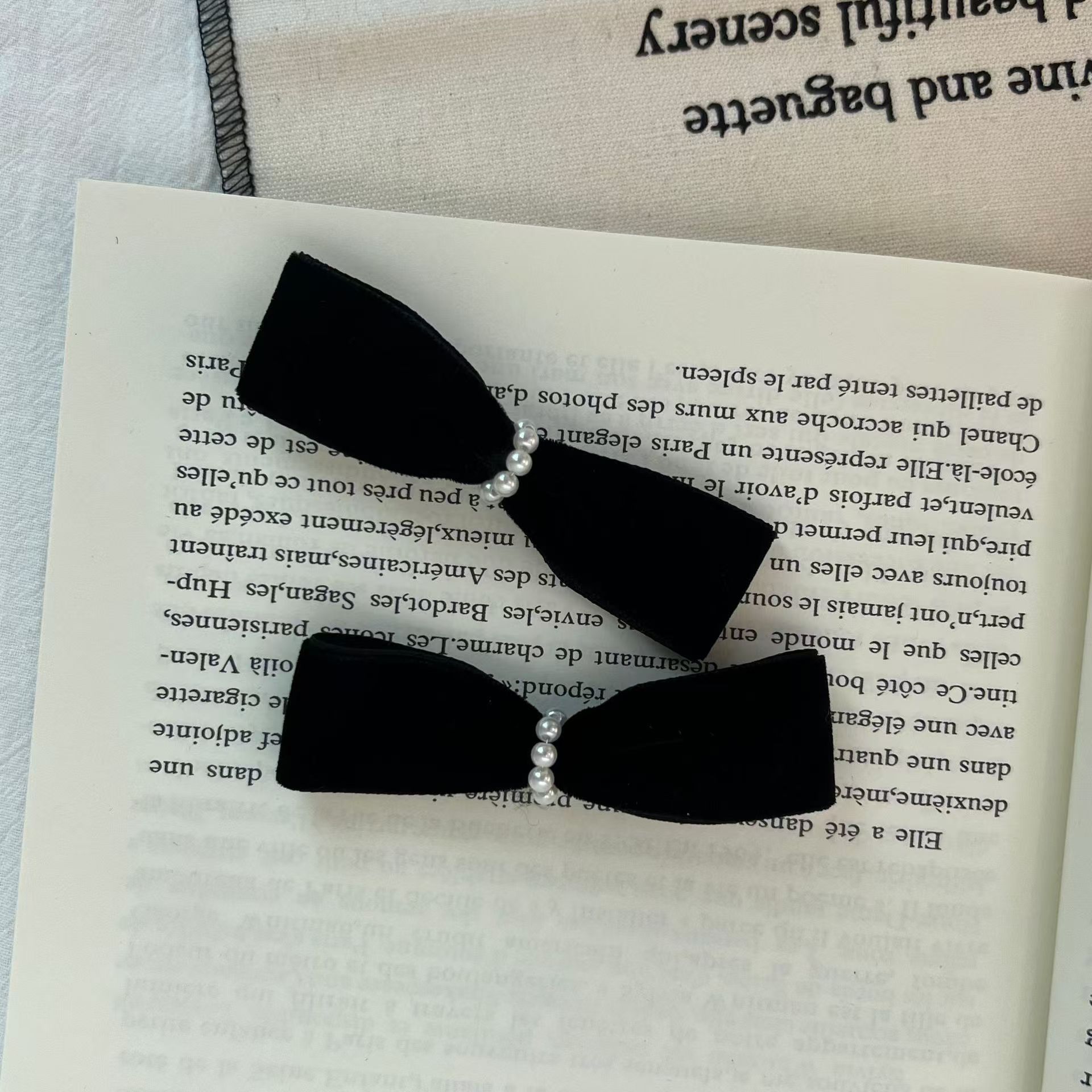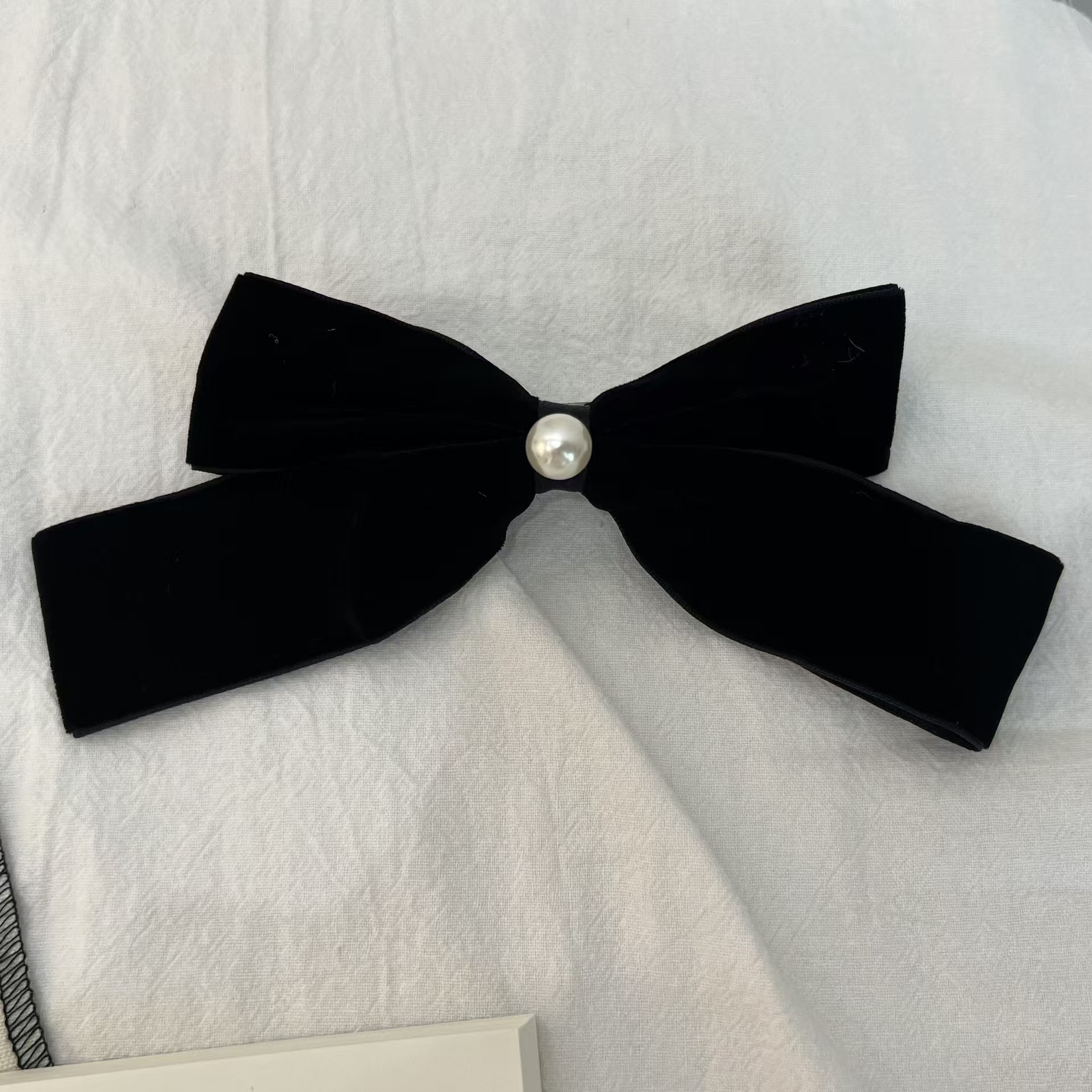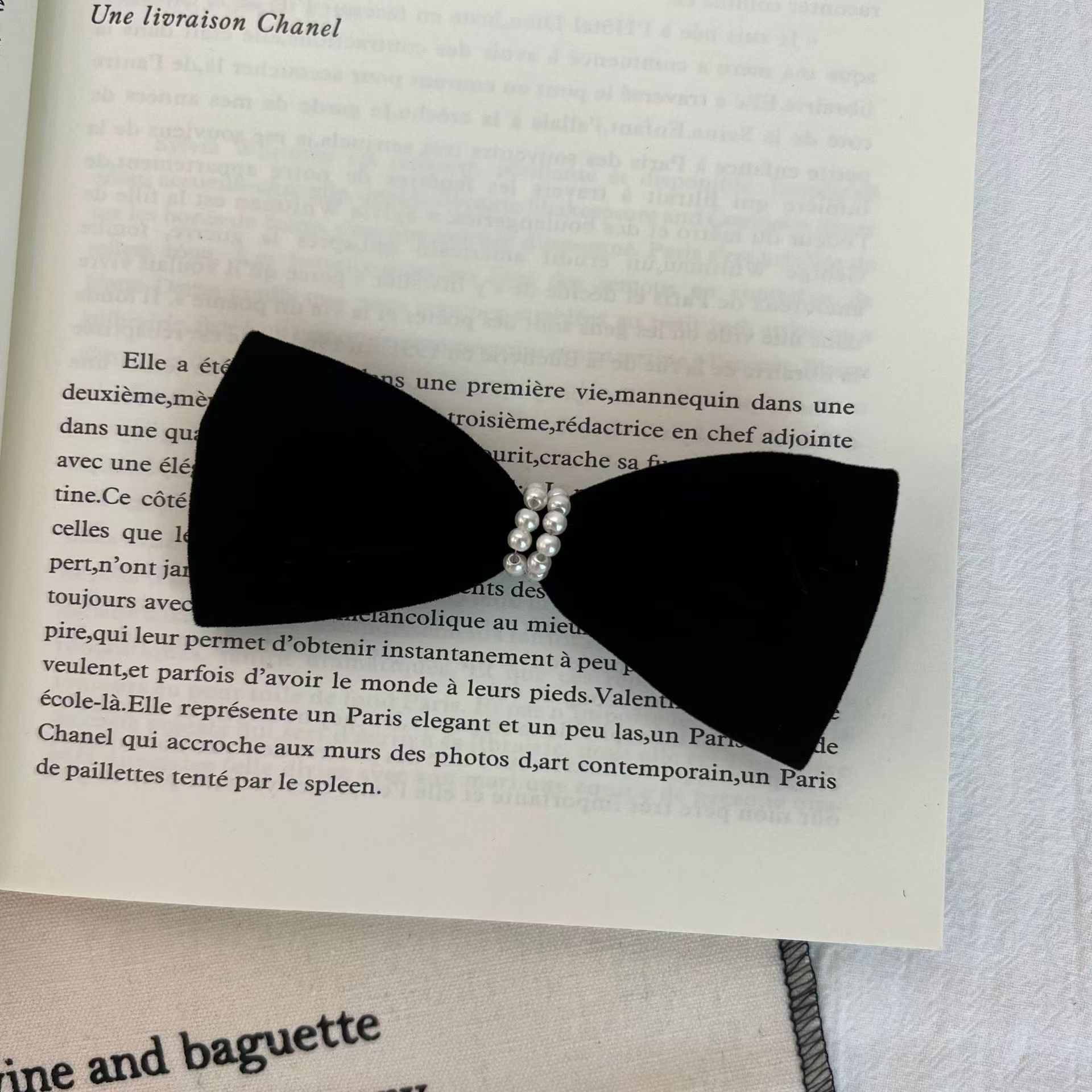 진주 벨벳 활 머리핀 여성의 봄 2024 새로운 스타일 헤어핀 우아한 사이드 뱅 덕빌 클립 헤드웨어스토어 가기