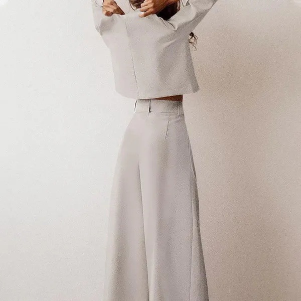 재고 가을과 겨울 국경 유럽 및 미국 여성 의류 아마존 느슨한 단색 긴 소매 캐주얼 투피스 와이드 레그 팬츠 세트