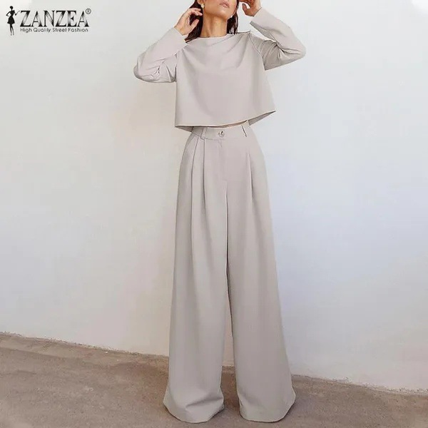 재고 가을과 겨울 국경 유럽 및 미국 여성 의류 아마존 느슨한 단색 긴 소매 캐주얼 투피스 와이드 레그 팬츠 세트스토어 가기