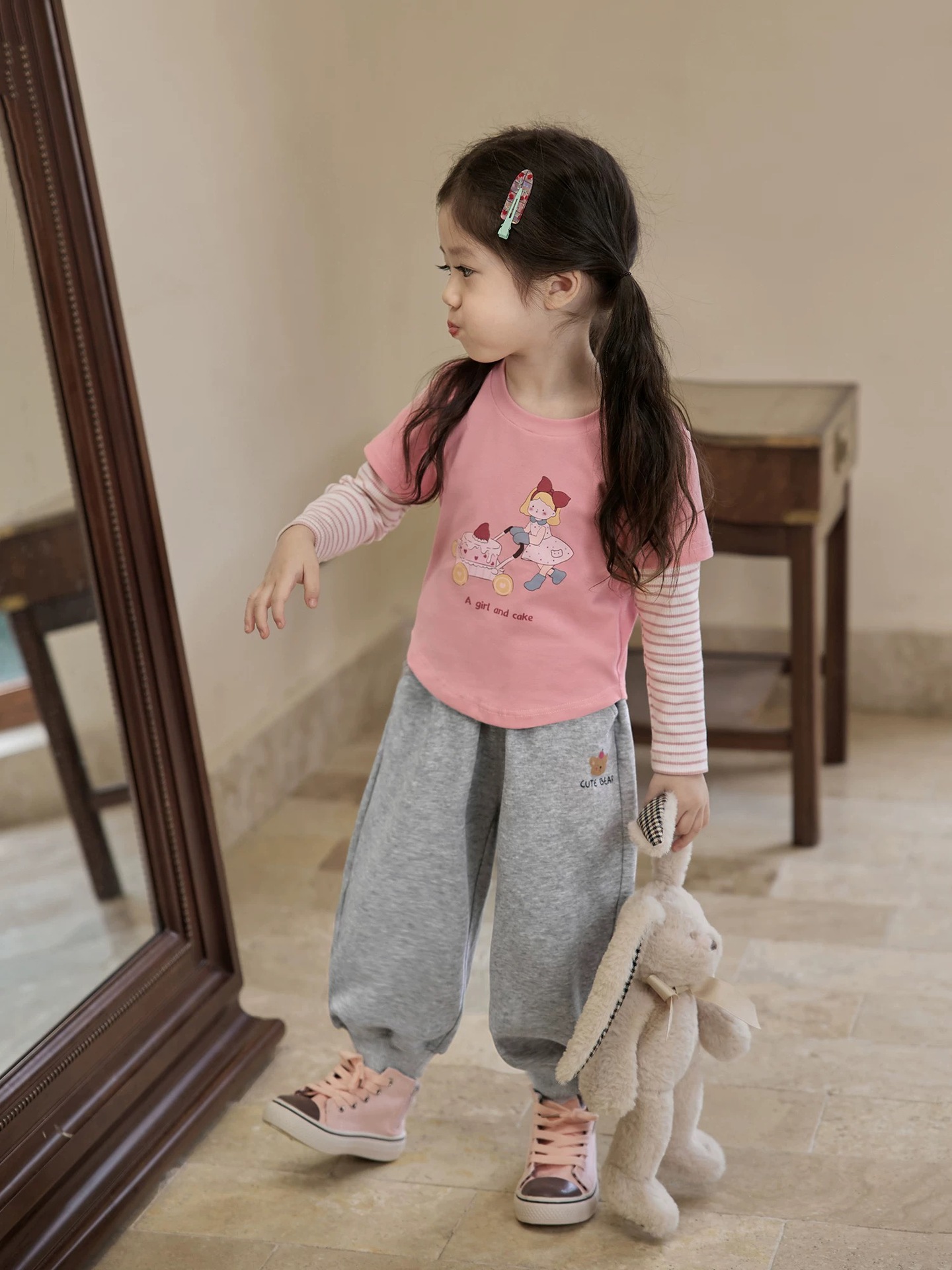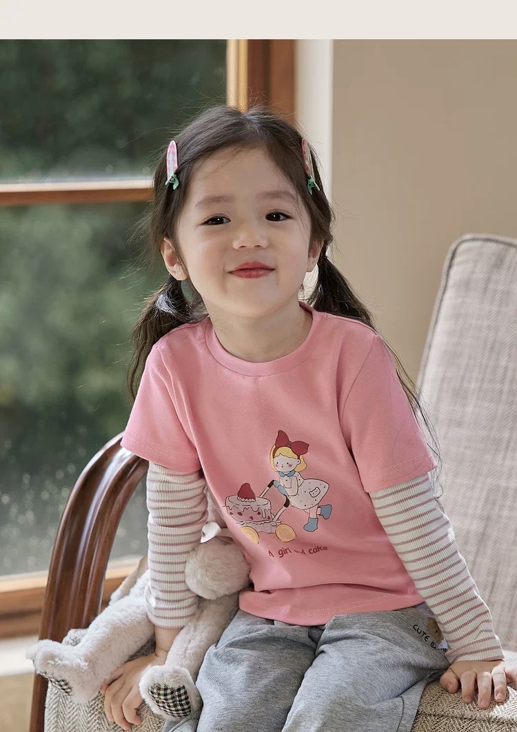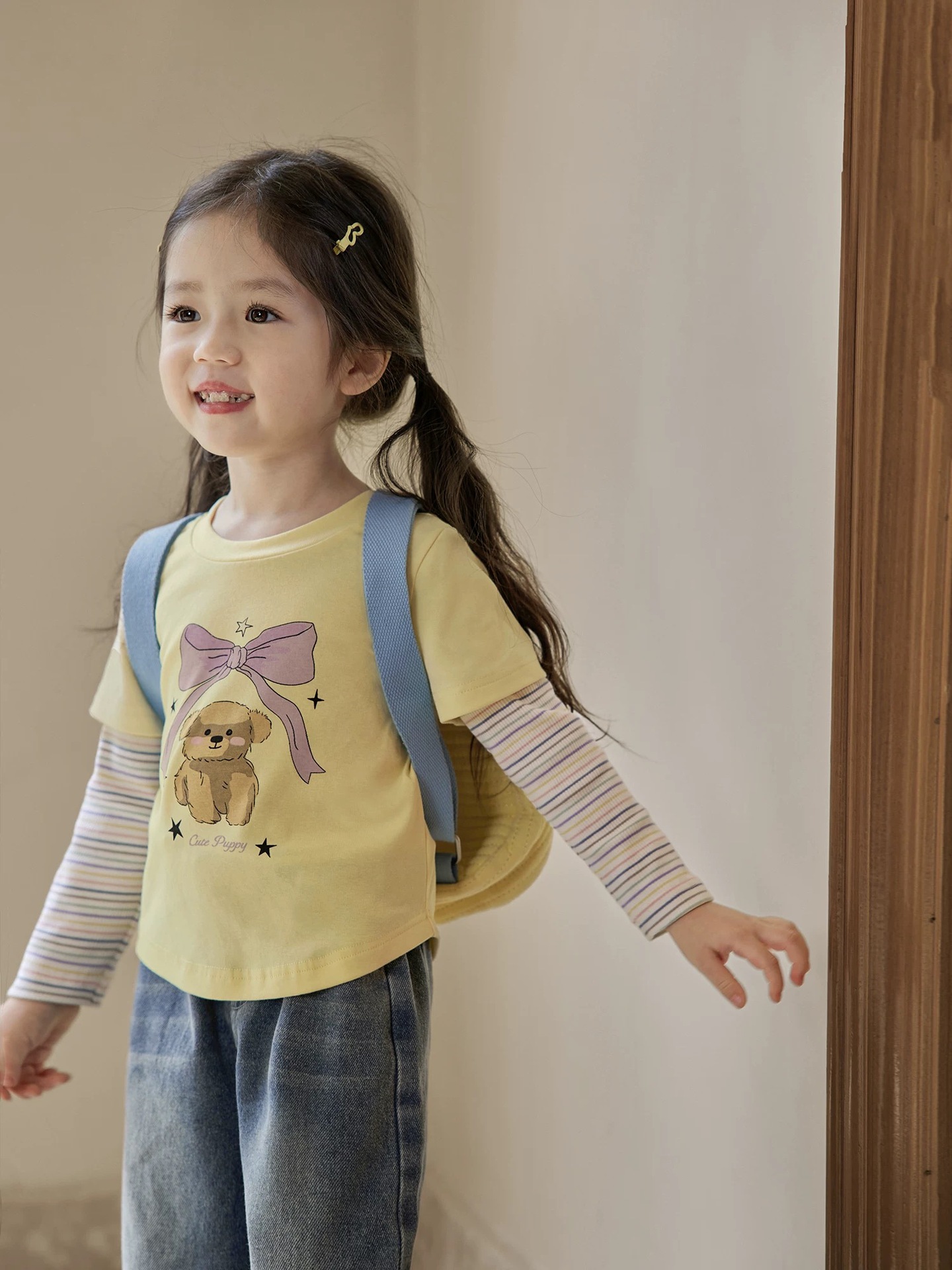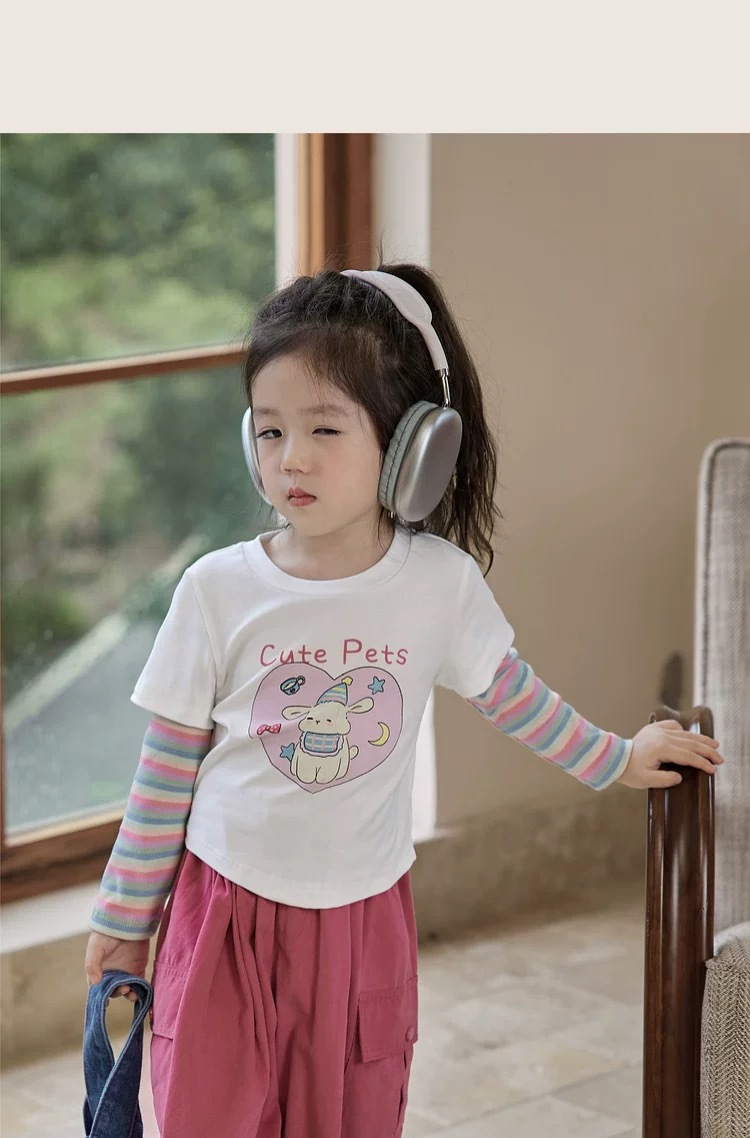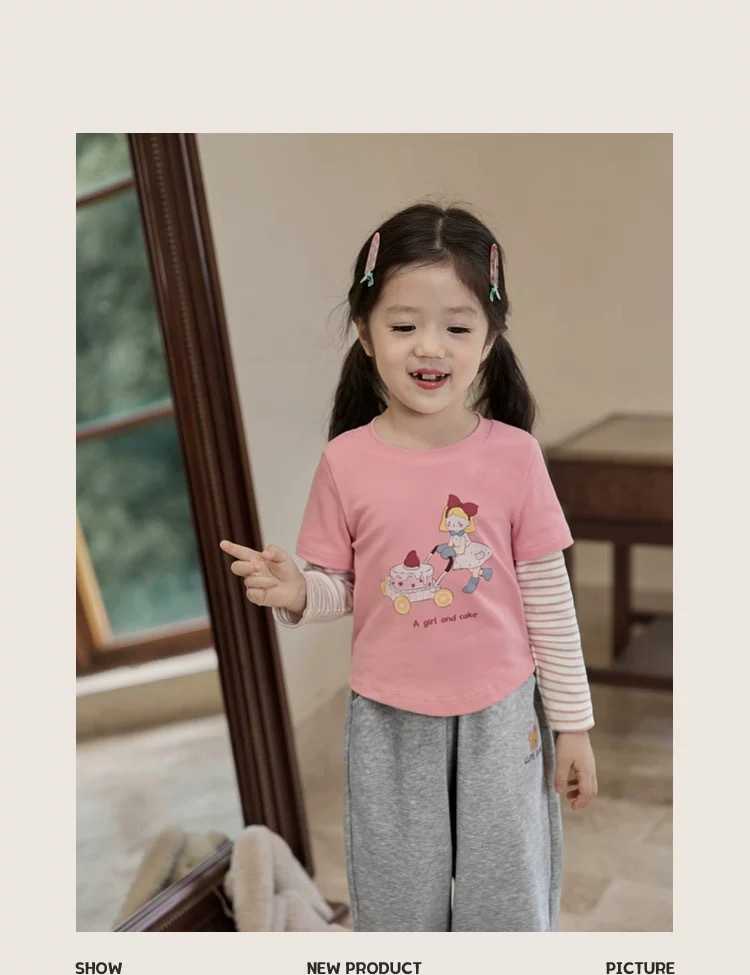 여아 티셔츠 2025 봄 가을 한국 스타일 페이크 투피스 스웨트셔츠 A급 아동 이너웨어 가을 긴팔 상의 아동복스토어 가기