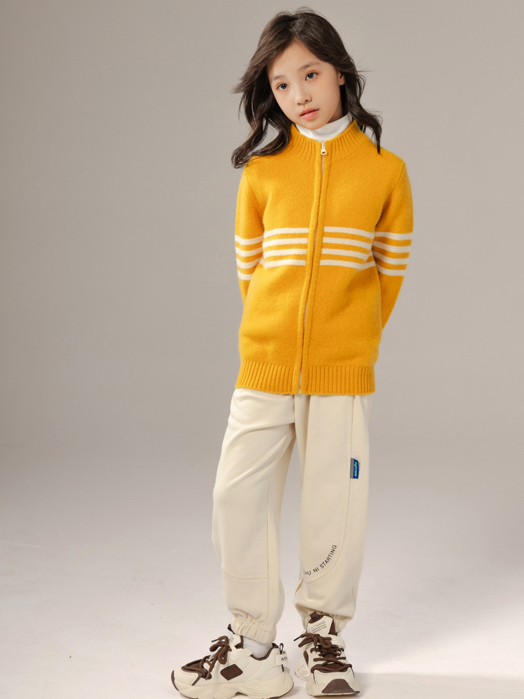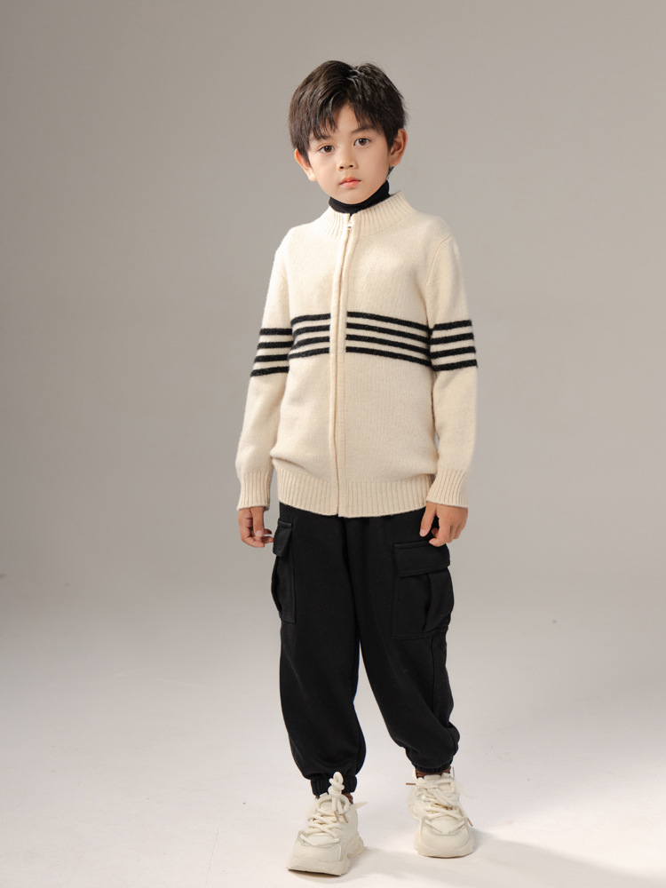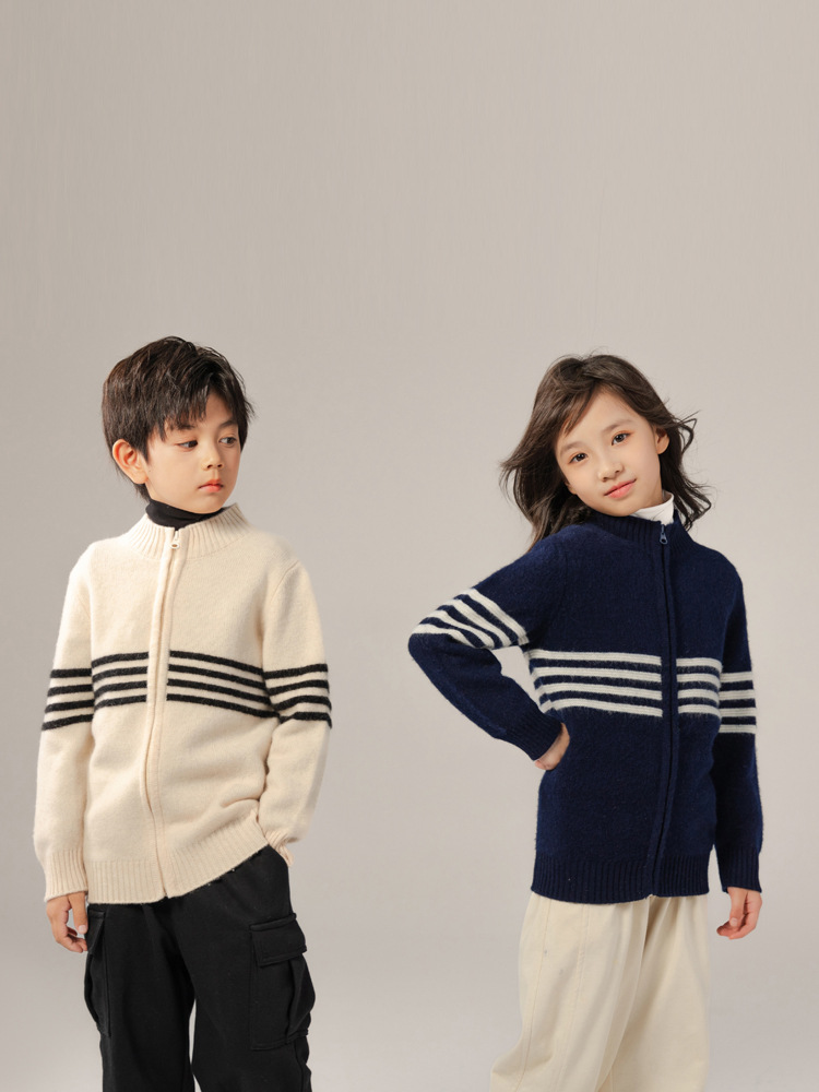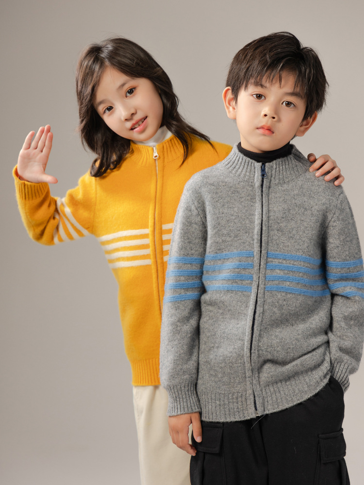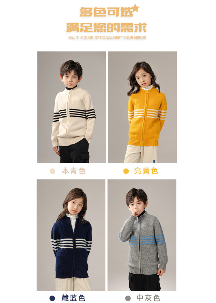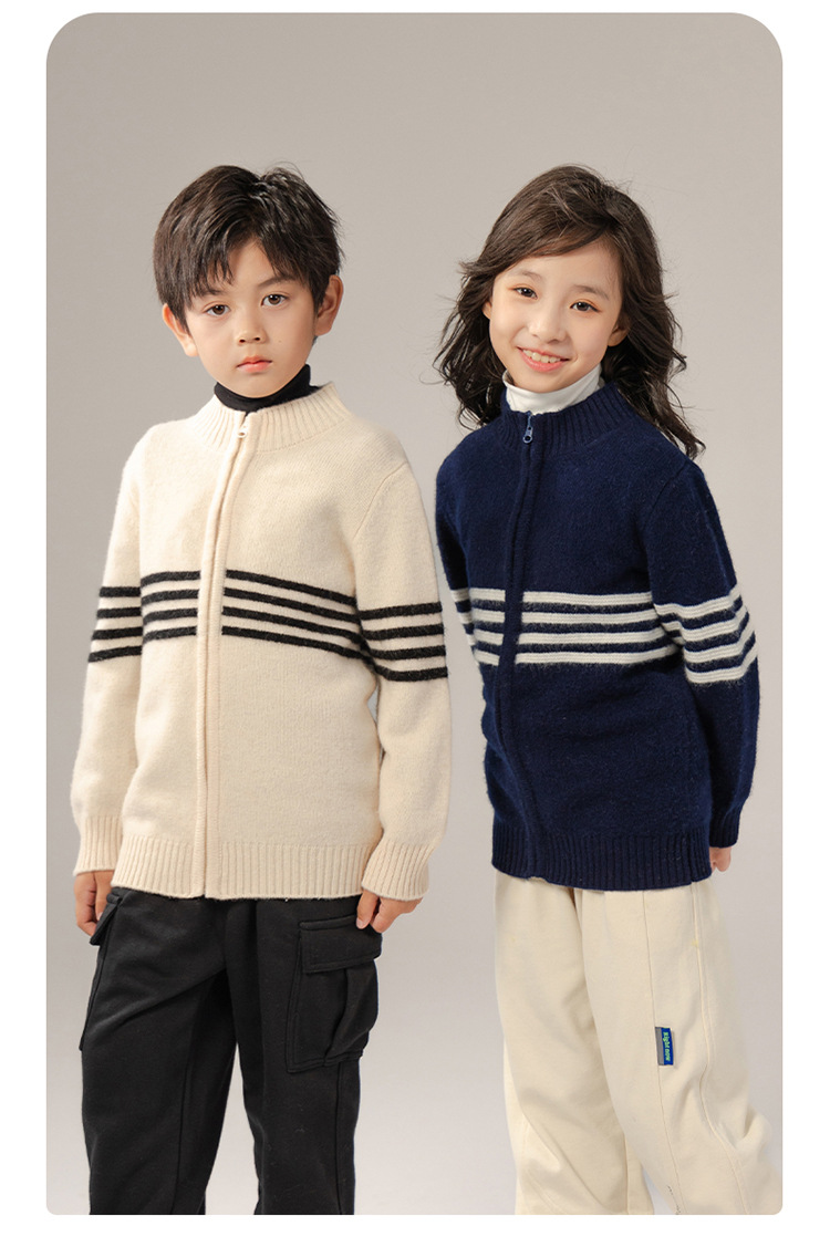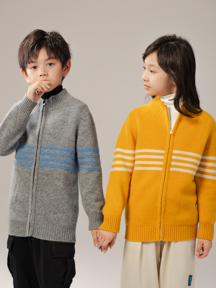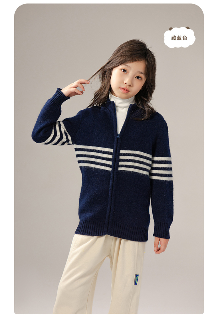 어린이 순수 양모 카디건 가을과 겨울 새로운 한국 스타일 소년 소녀 지퍼 스웨터 코트 큰 어린이 컬러 블록 코트스토어 가기