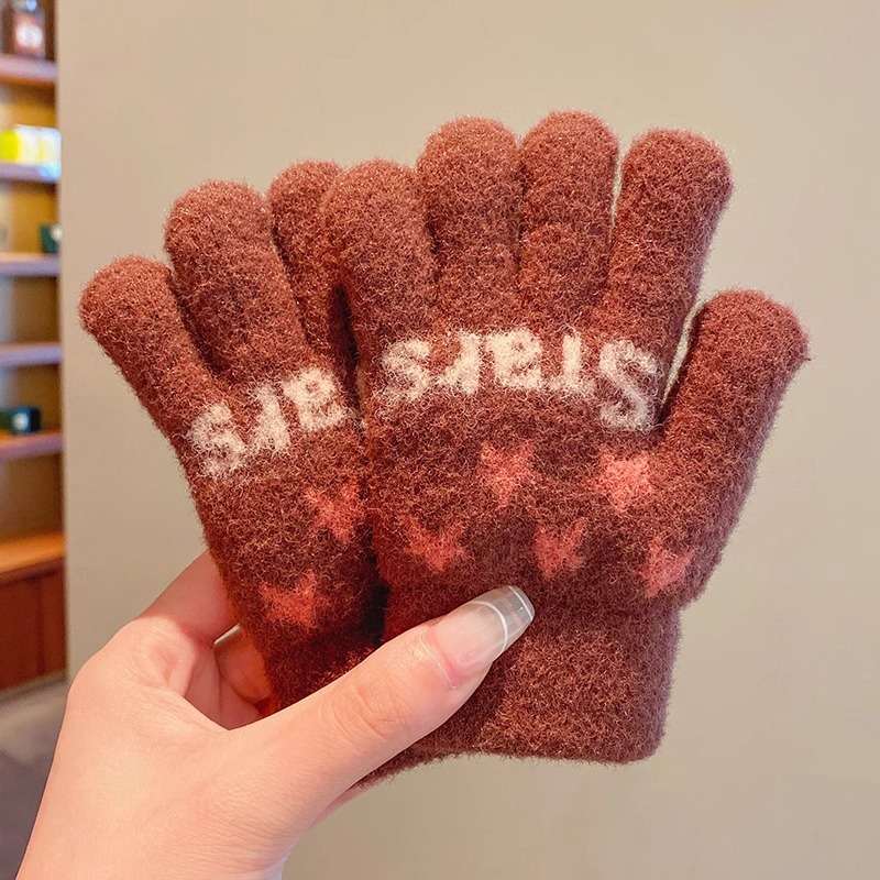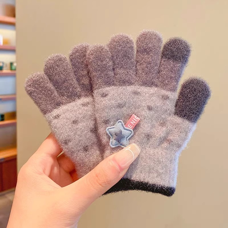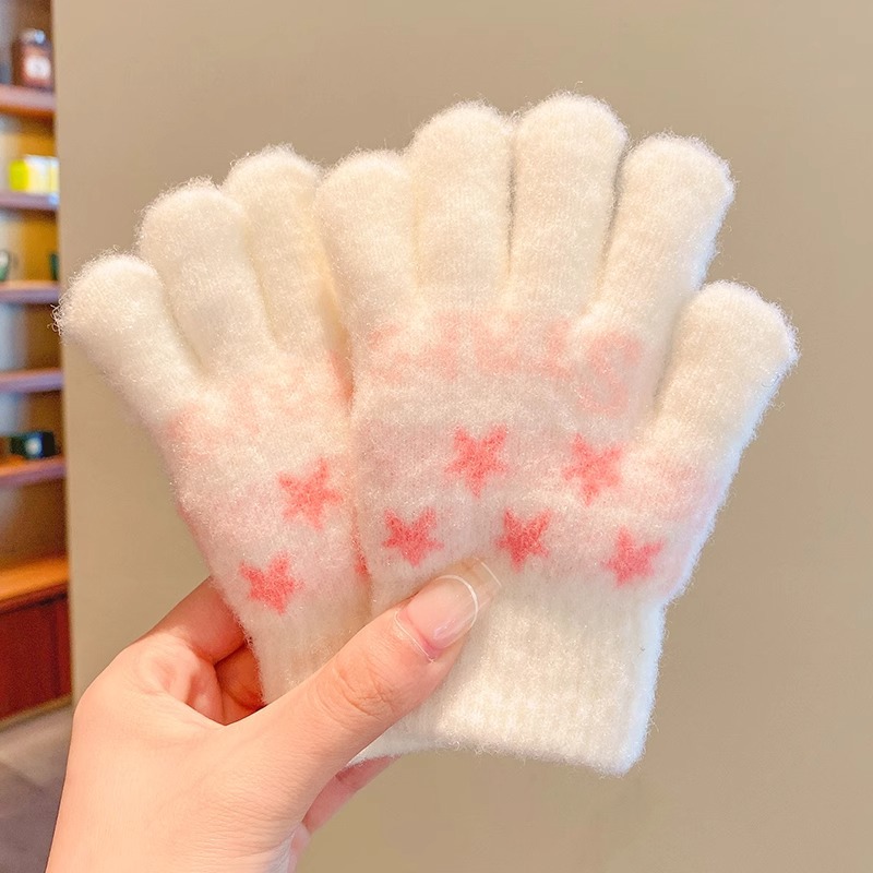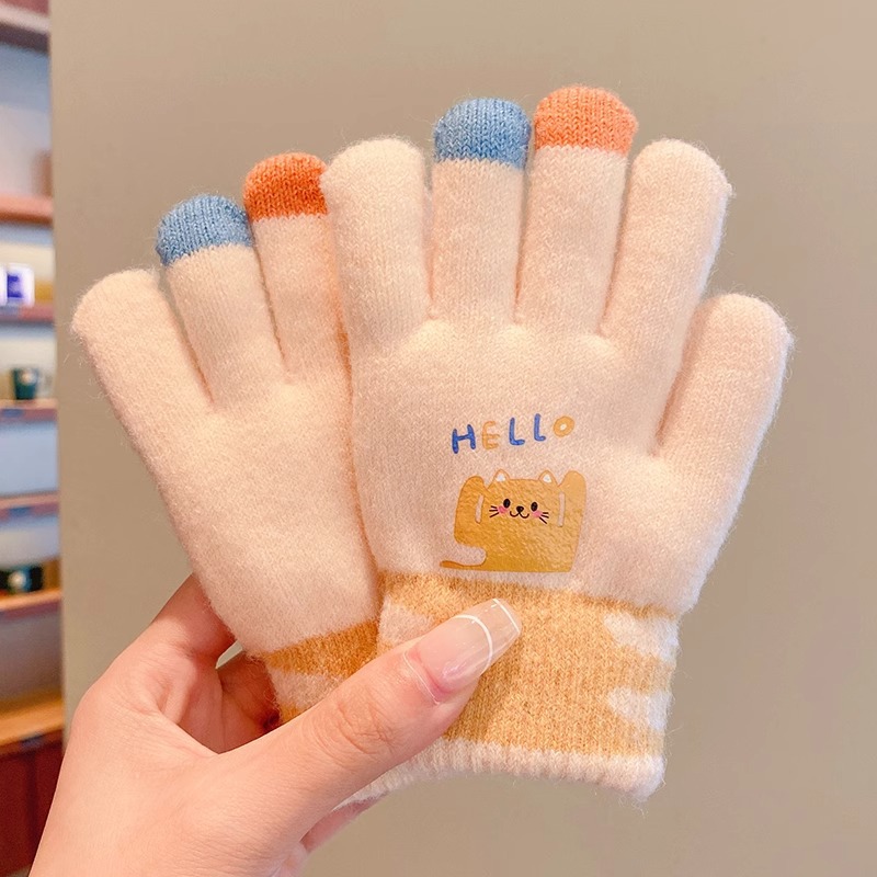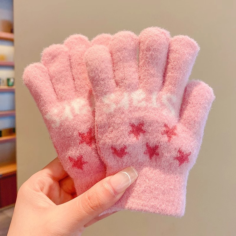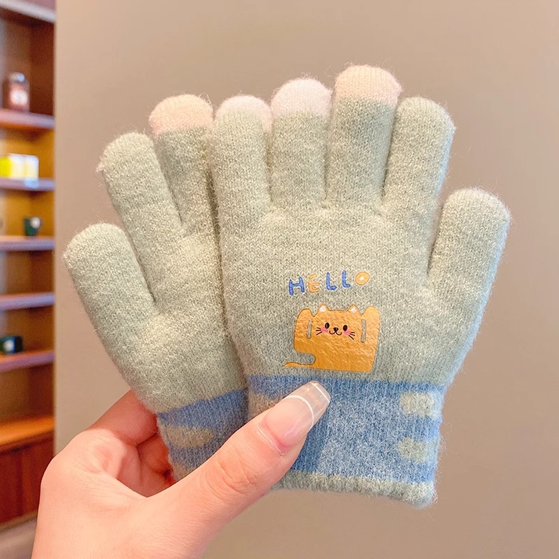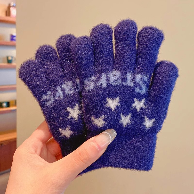 어린이 니트 장갑 겨울 손가락 소년 소녀 아기 플러스 벨벳 두꺼운 따뜻한 다섯 손가락 소년 소녀 겨울