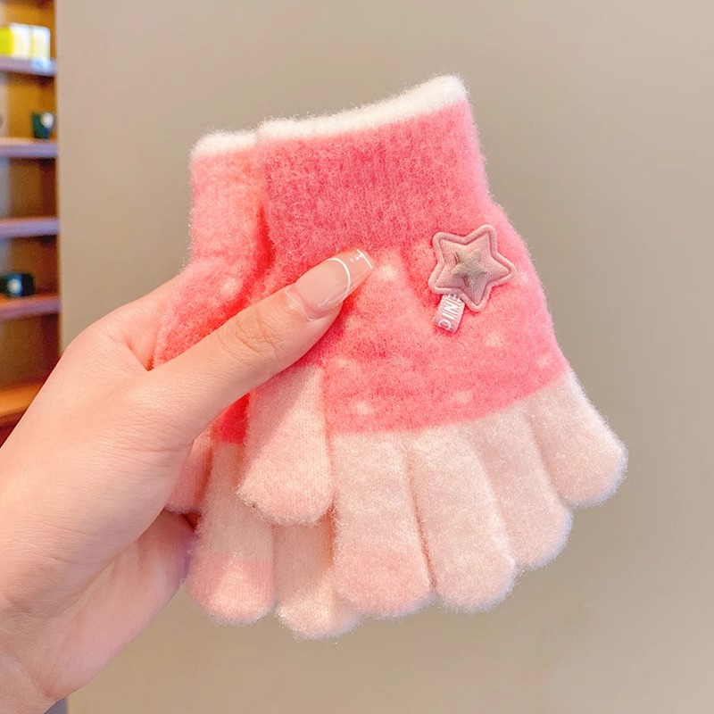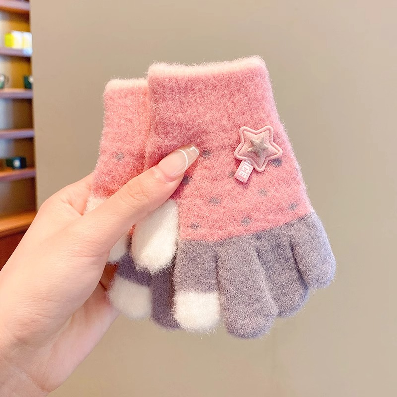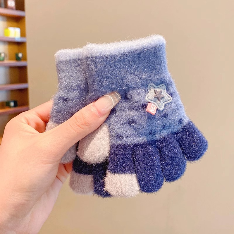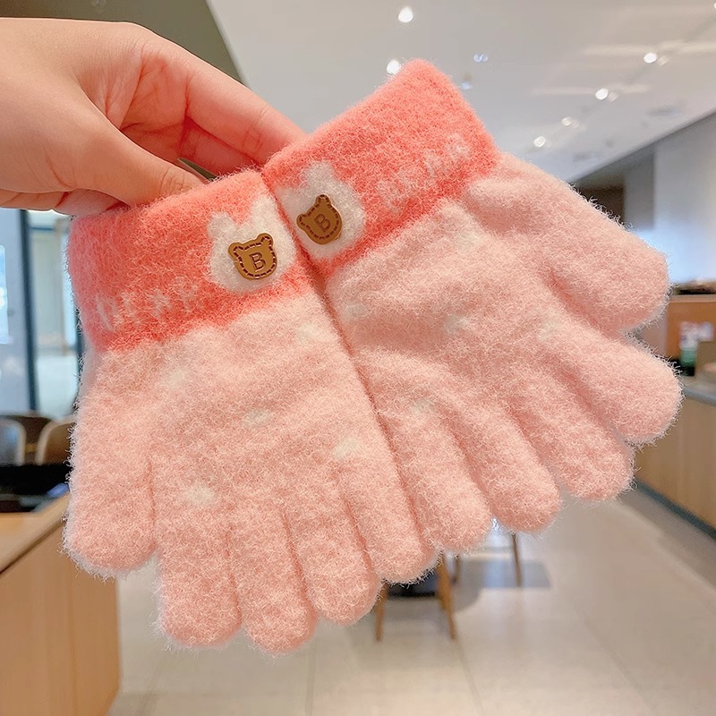 어린이 니트 장갑 겨울 손가락 소년 소녀 아기 플러스 벨벳 두꺼운 따뜻한 다섯 손가락 소년 소녀 겨울스토어 가기