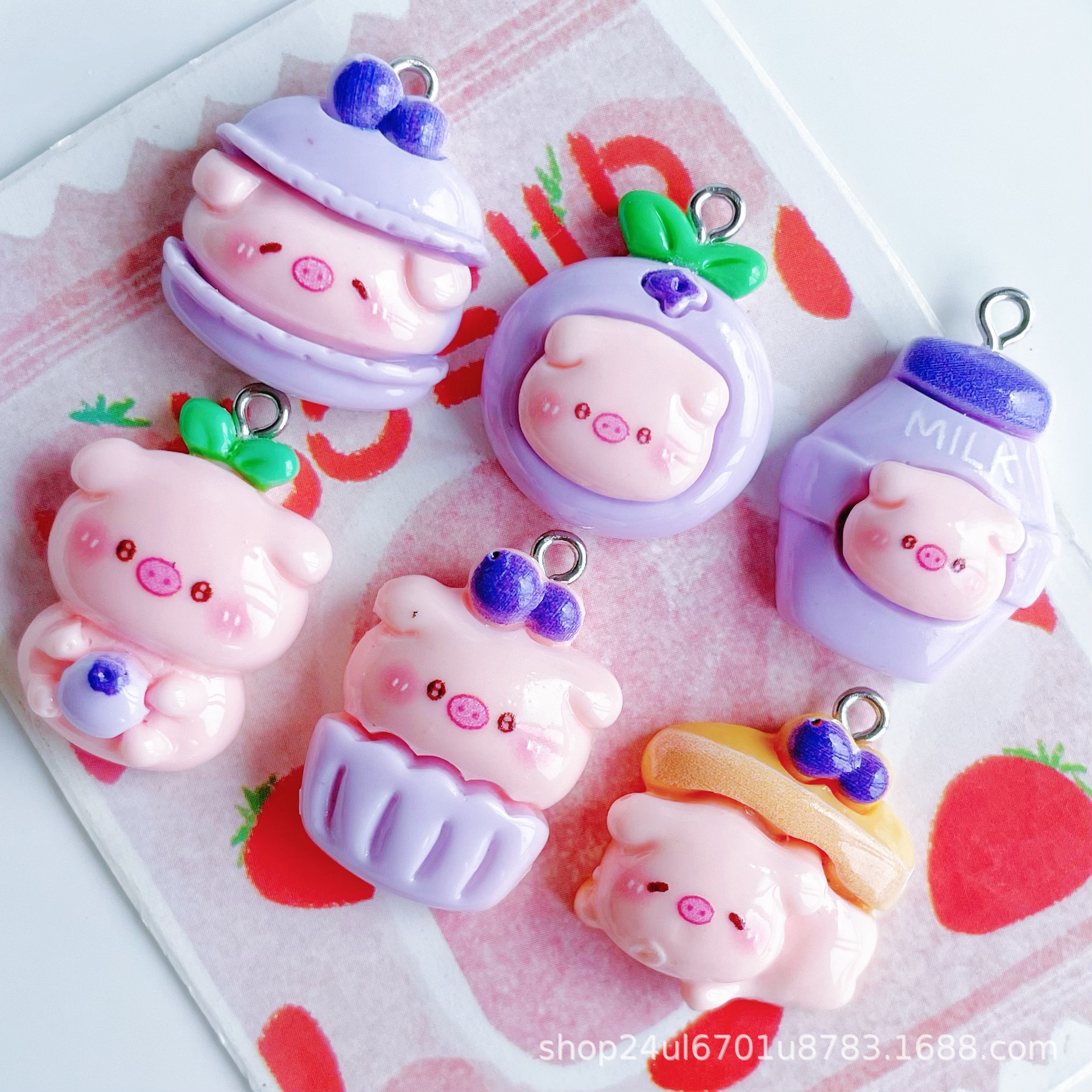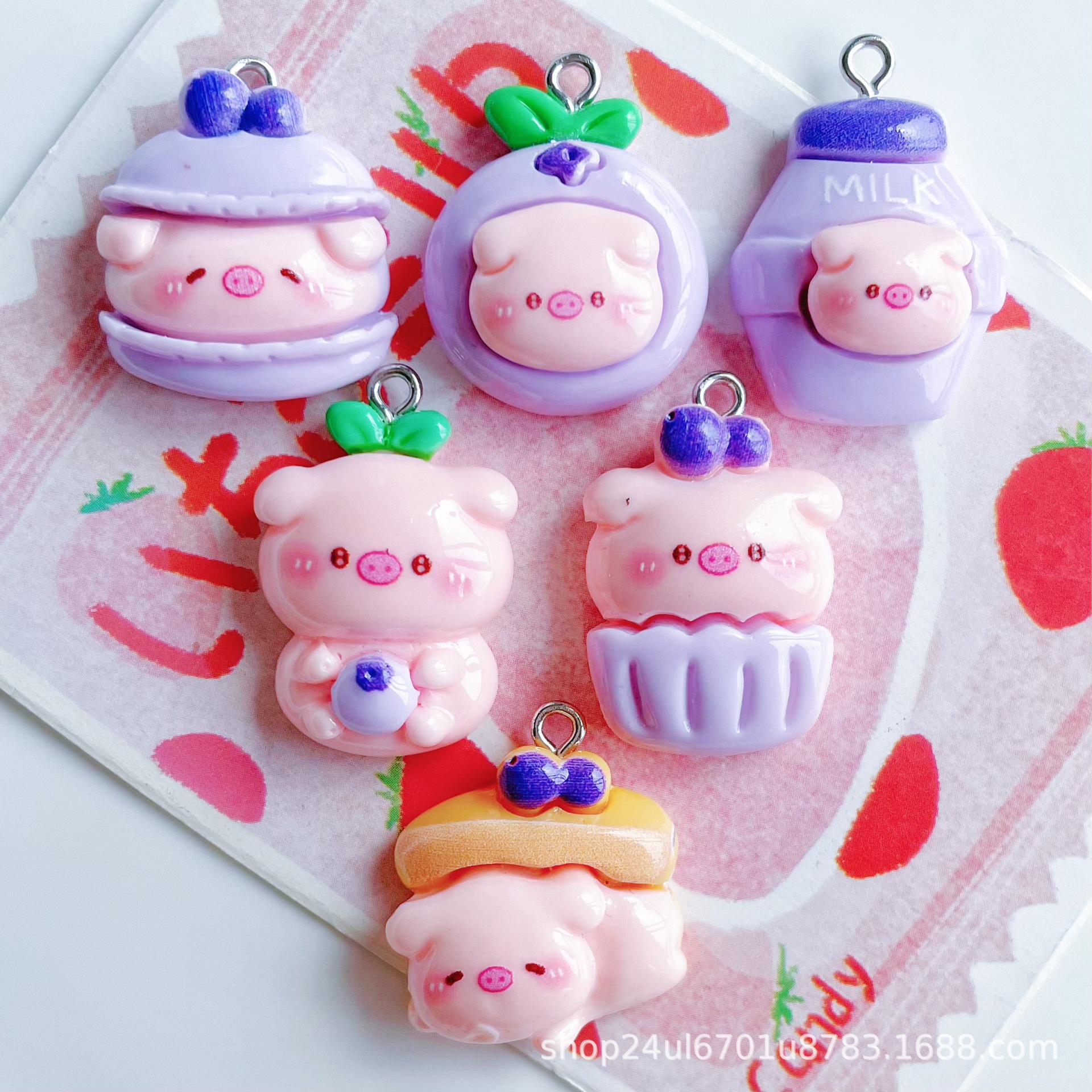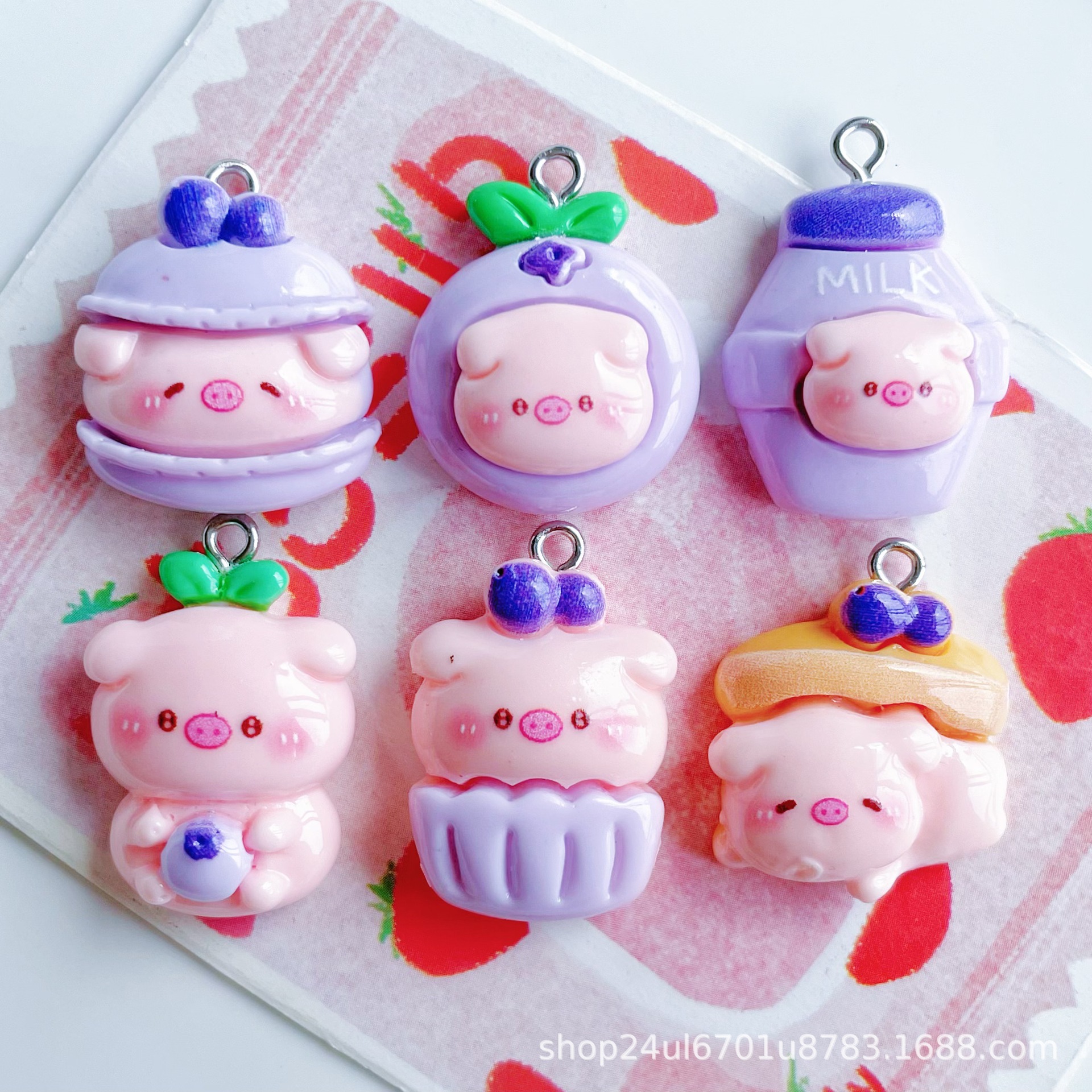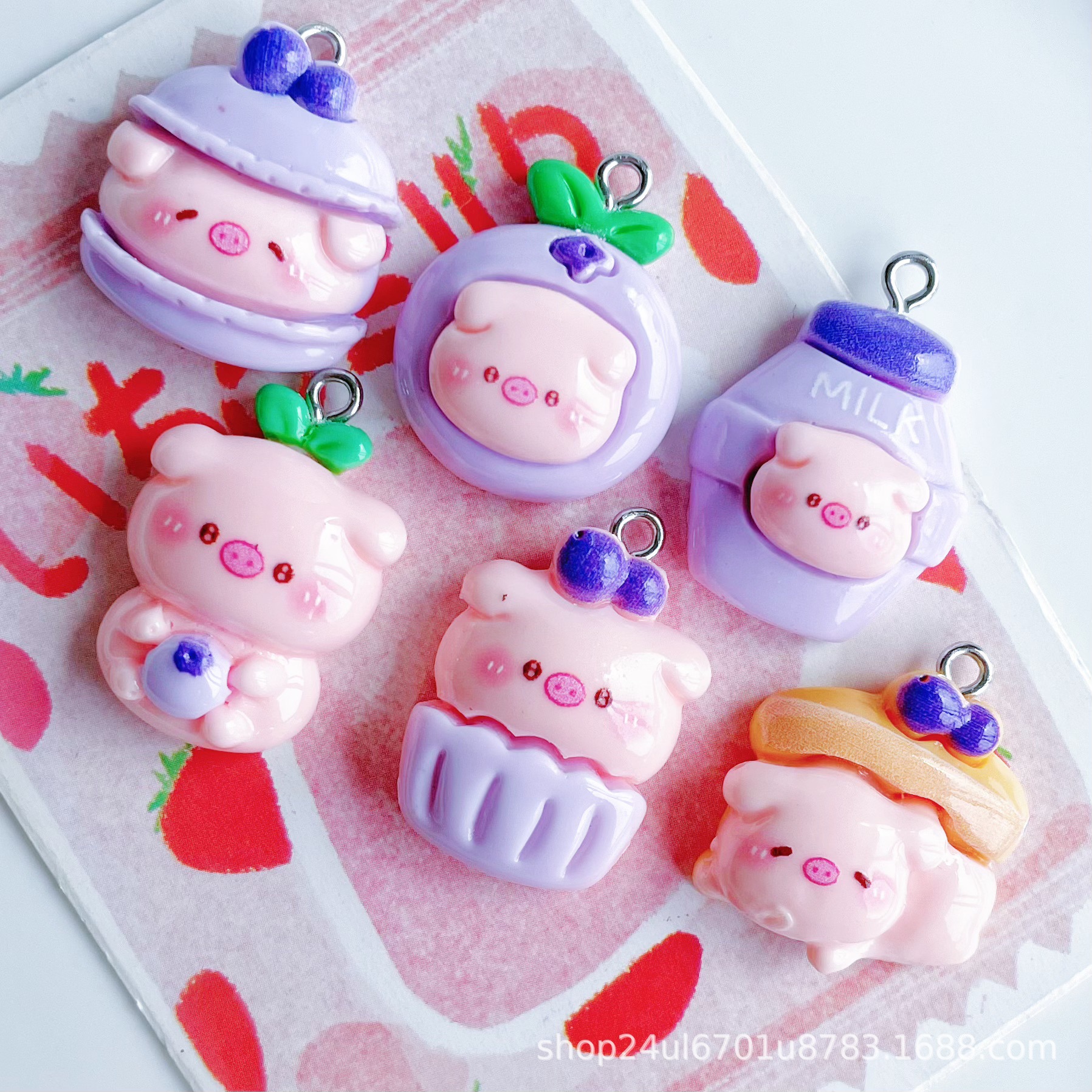 보라색 돼지 블루 베리 케이크 수지 액세서리 DIY 어린이 수제 보석 액세서리 펜던트 펜던트 목걸이 팔찌스토어 가기