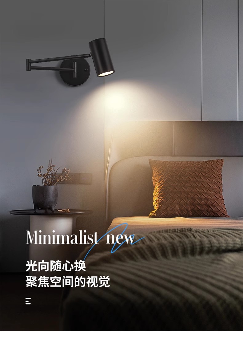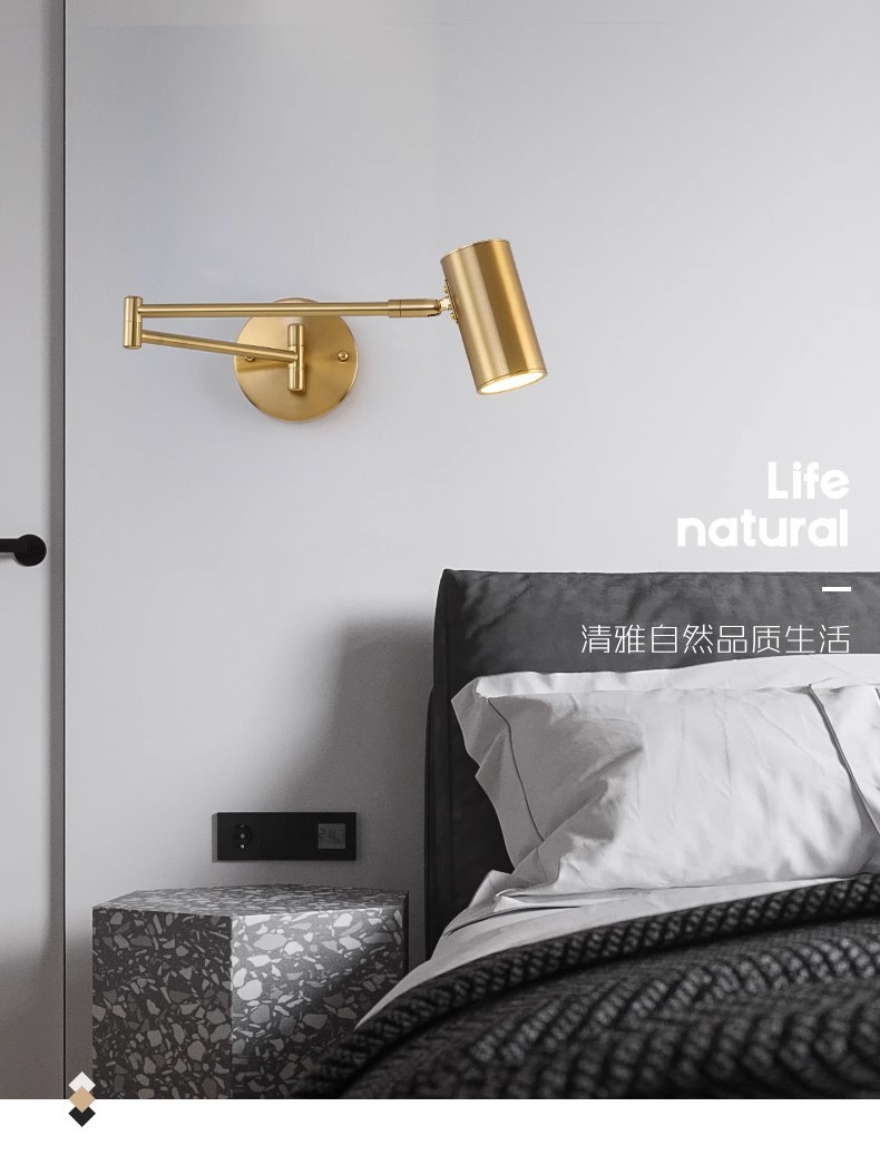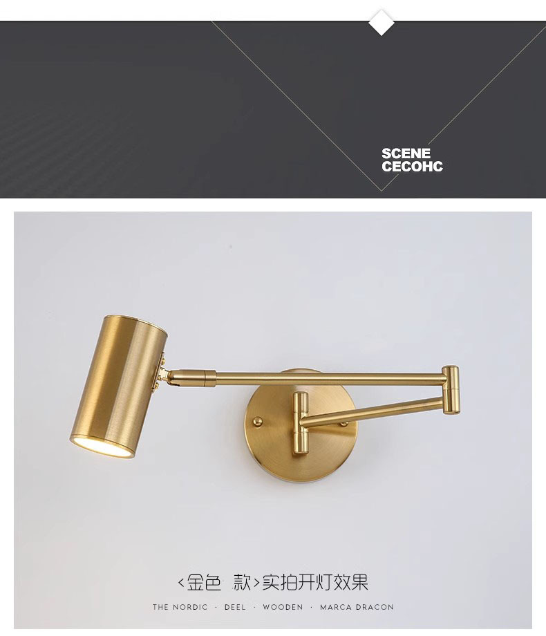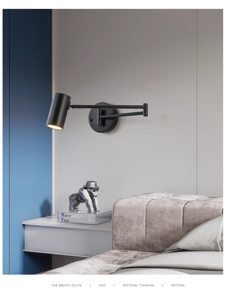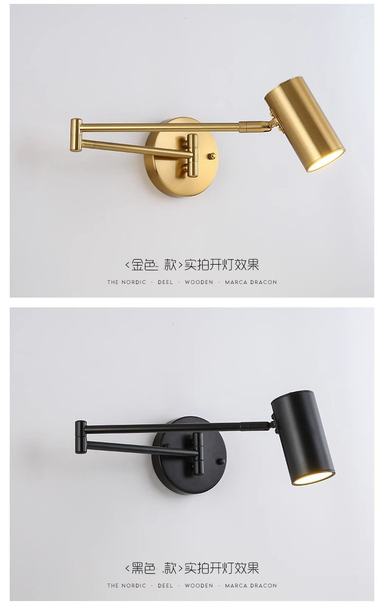북유럽 침실 연구 또는 스튜디오 호텔 방 침실 독서 램프 접히는 망원경 긴 막대 로커 벽 램프스토어 가기