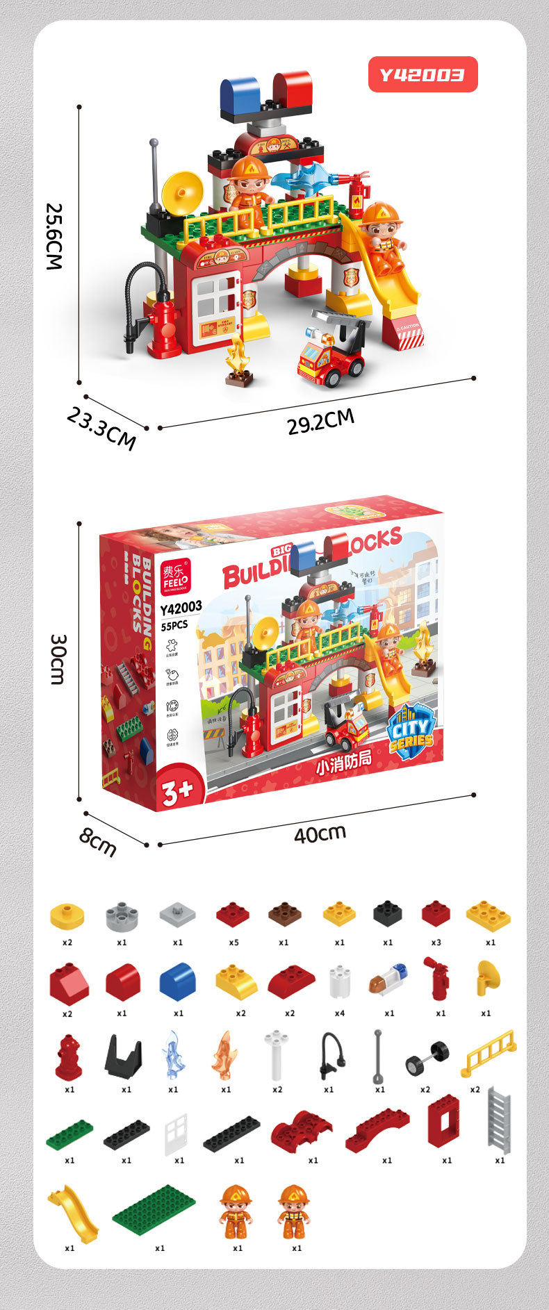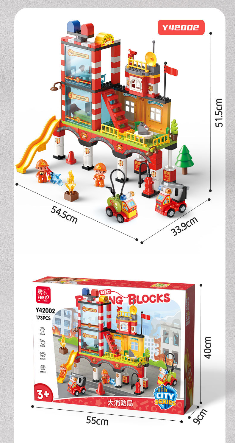 Fei Le 대형 입자 조립 건물 블록 소방서 어린이 창조적 인 건물 재미있는 장면 3 년 된 장난감 도매와 호환 가능스토어 가기