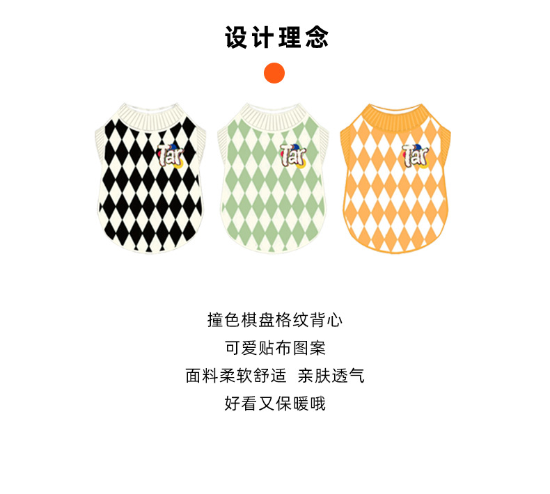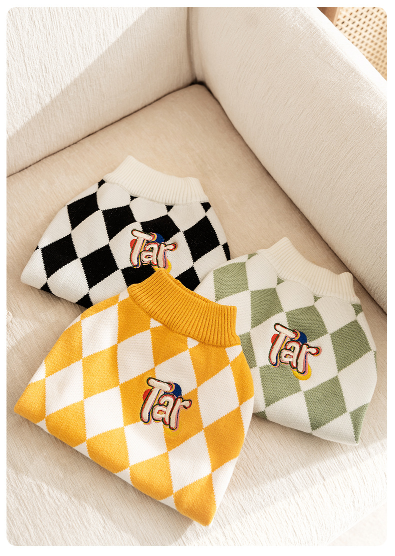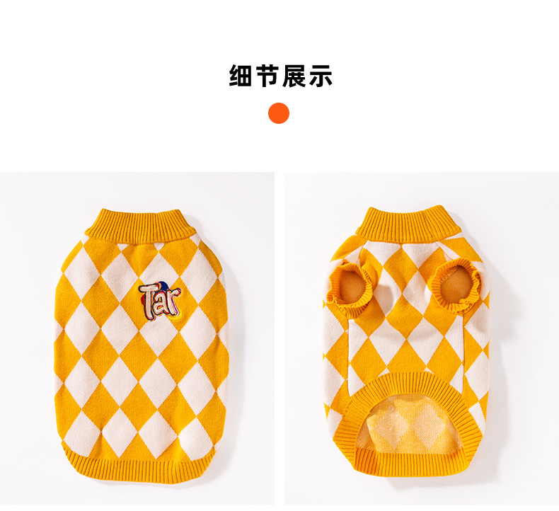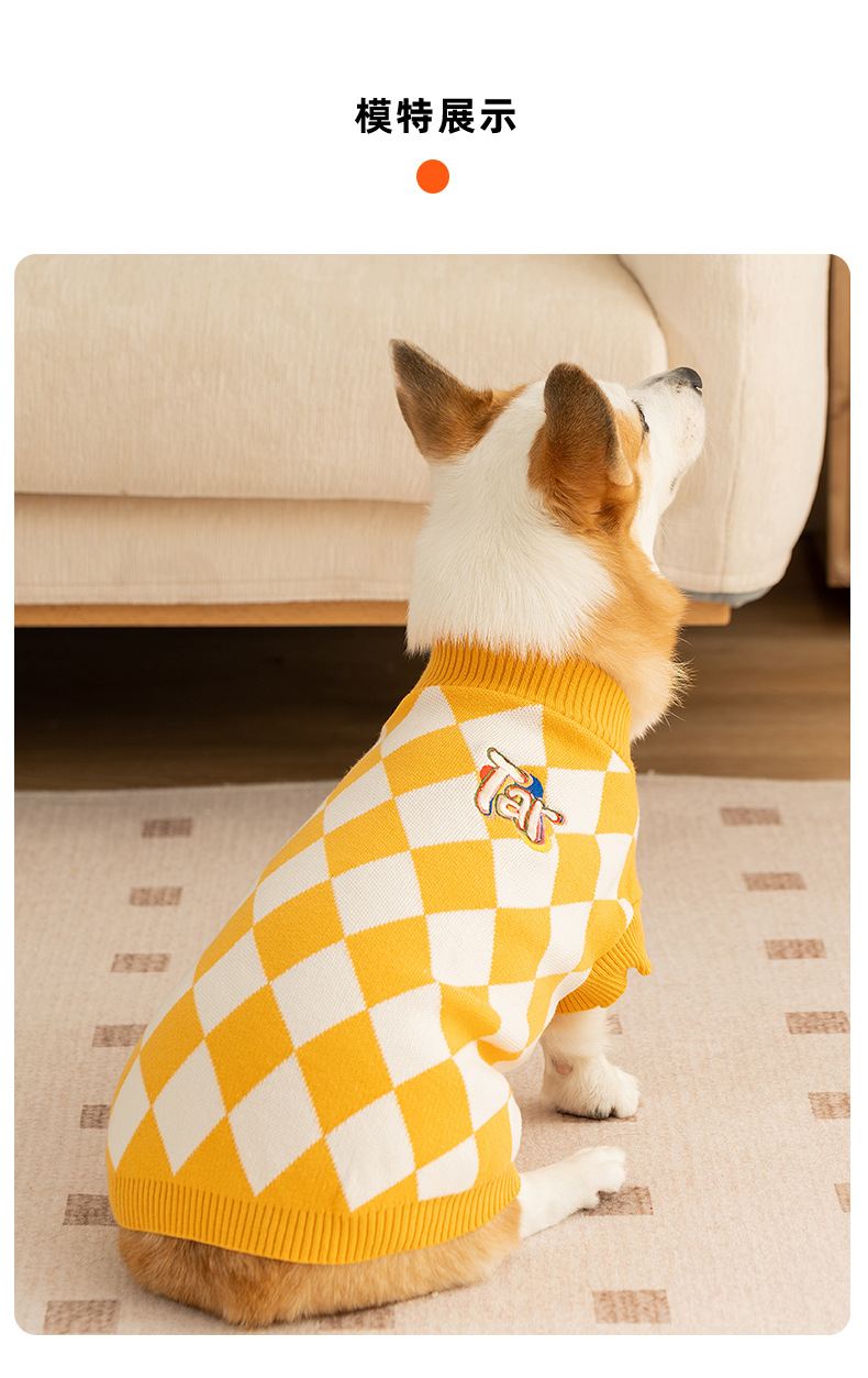 노란색 바둑판 패치 Corgi 스웨터 중형 및 대형 개 가을과 겨울 민소매 애완 동물 개 옷 도매
