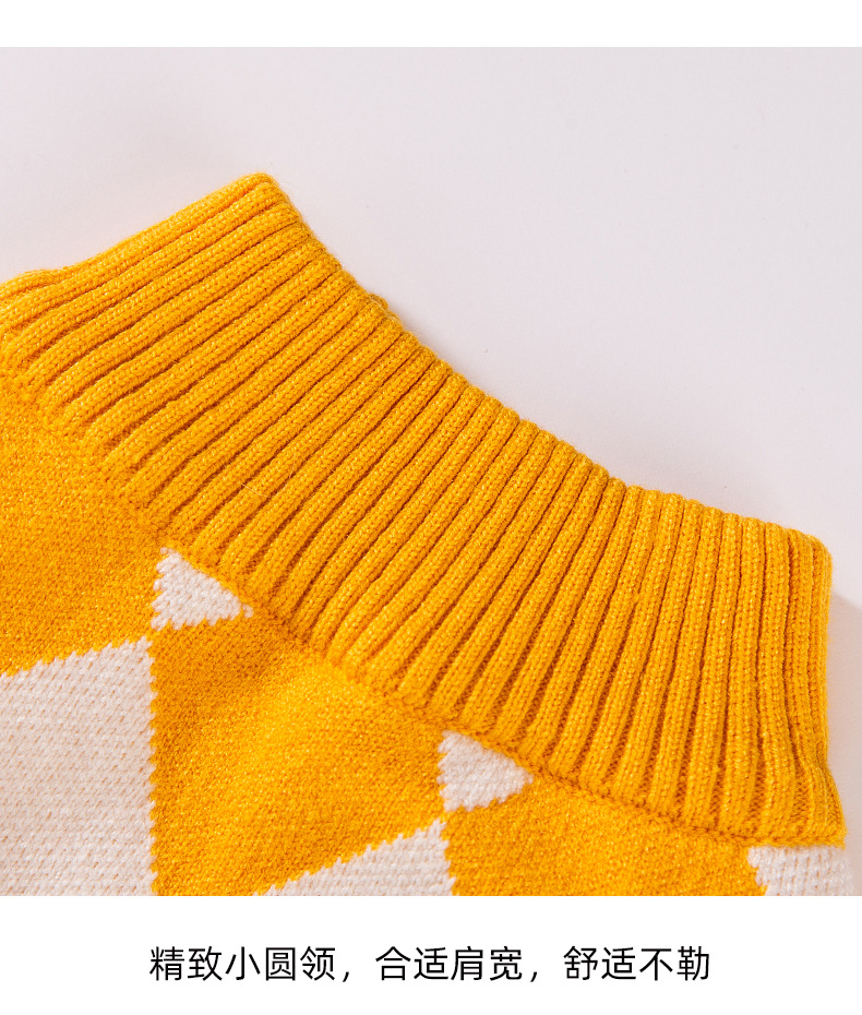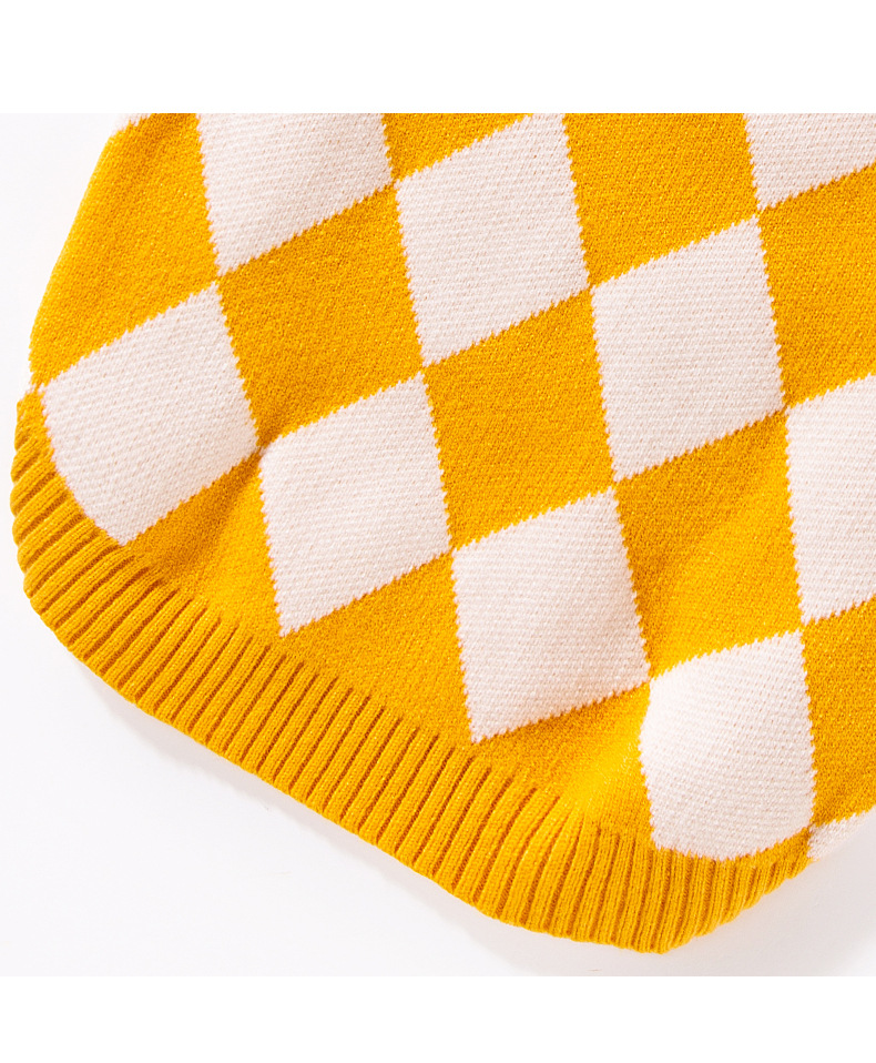 노란색 바둑판 패치 Corgi 스웨터 중형 및 대형 개 가을과 겨울 민소매 애완 동물 개 옷 도매스토어 가기