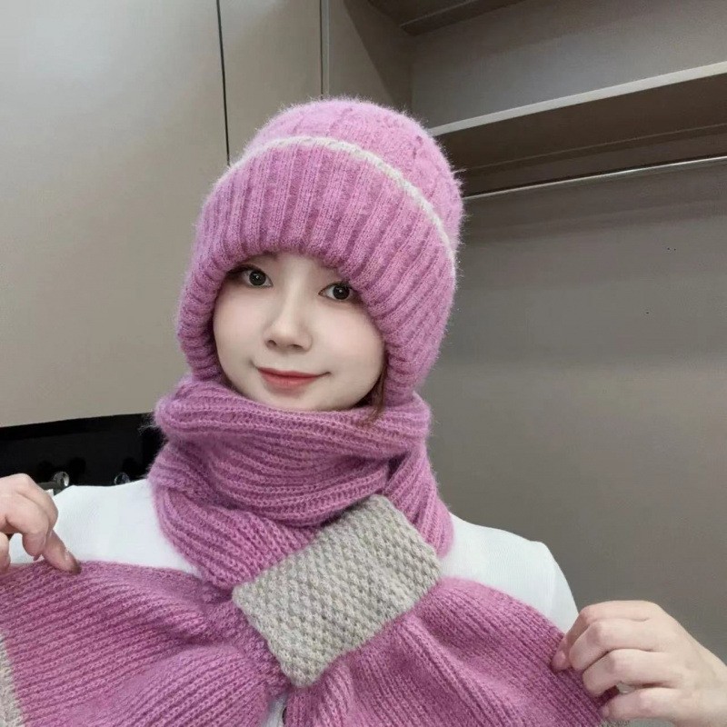 帽子女冬 帽子围巾一体 保暖帽子 套头帽 围巾帽