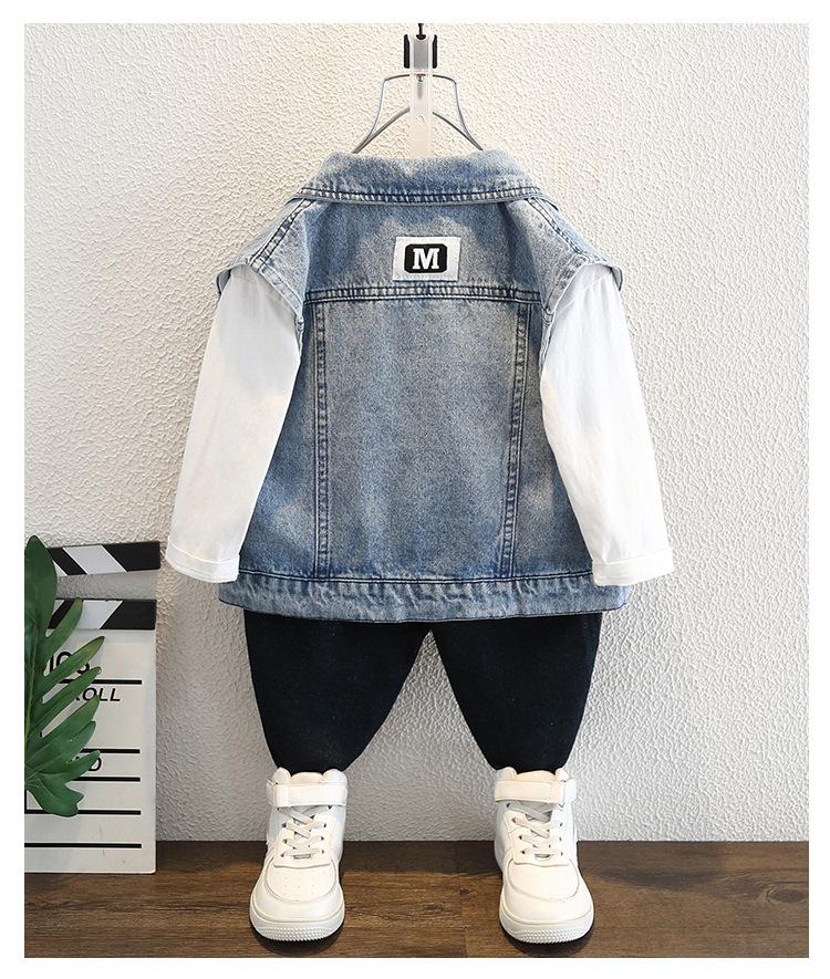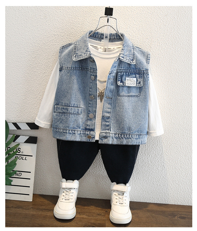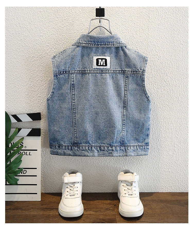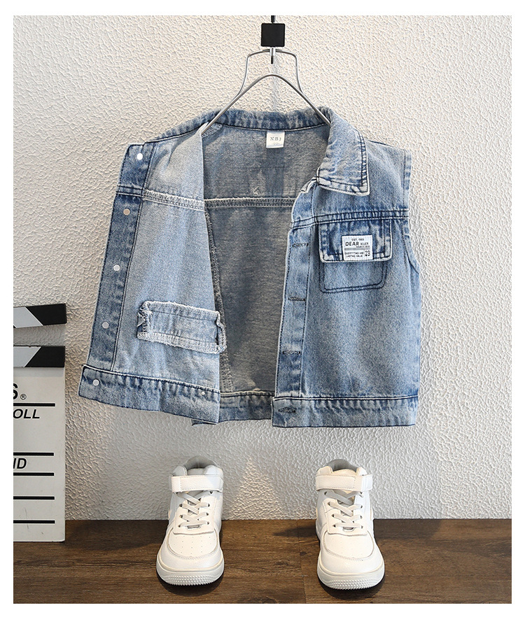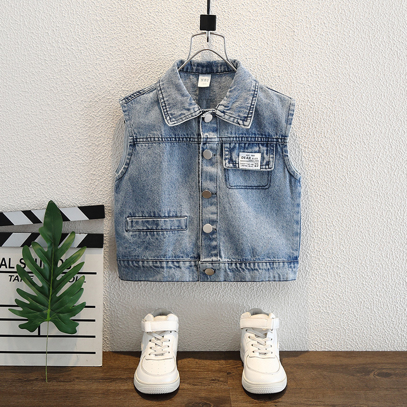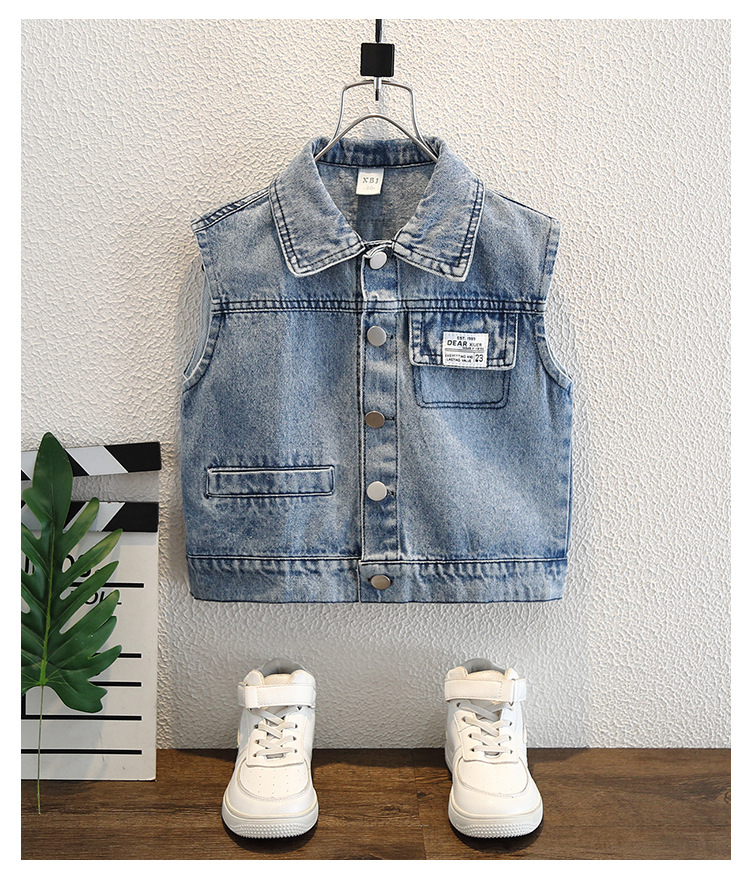 소년 가을 데님 조끼 코트 2024 봄과 가을 새로운 서양식 어린이 한국 캐주얼 조끼 코트 가을스토어 가기