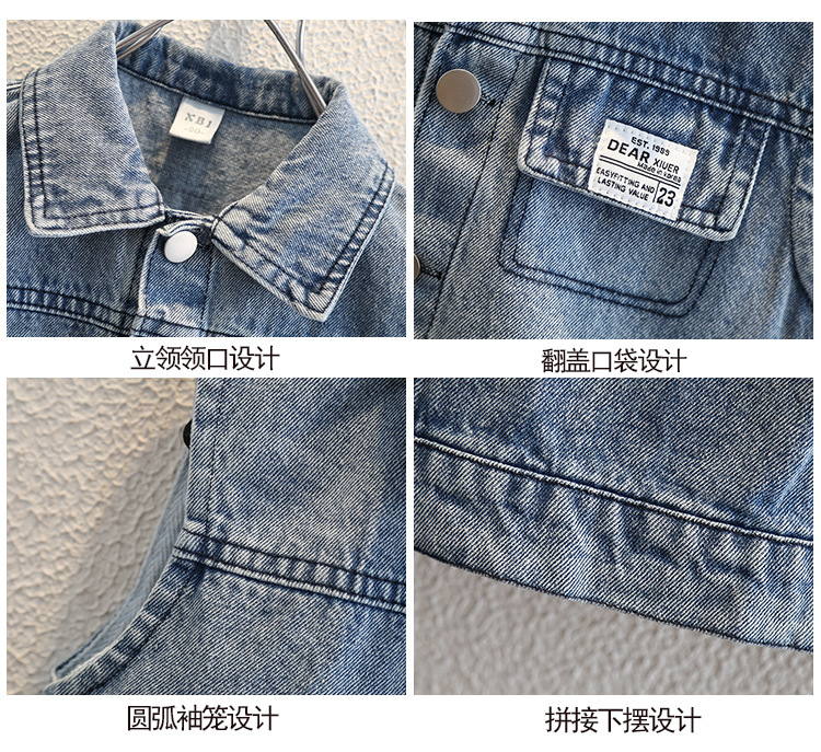 소년 가을 데님 조끼 코트 2024 봄과 가을 새로운 서양식 어린이 한국 캐주얼 조끼 코트 가을