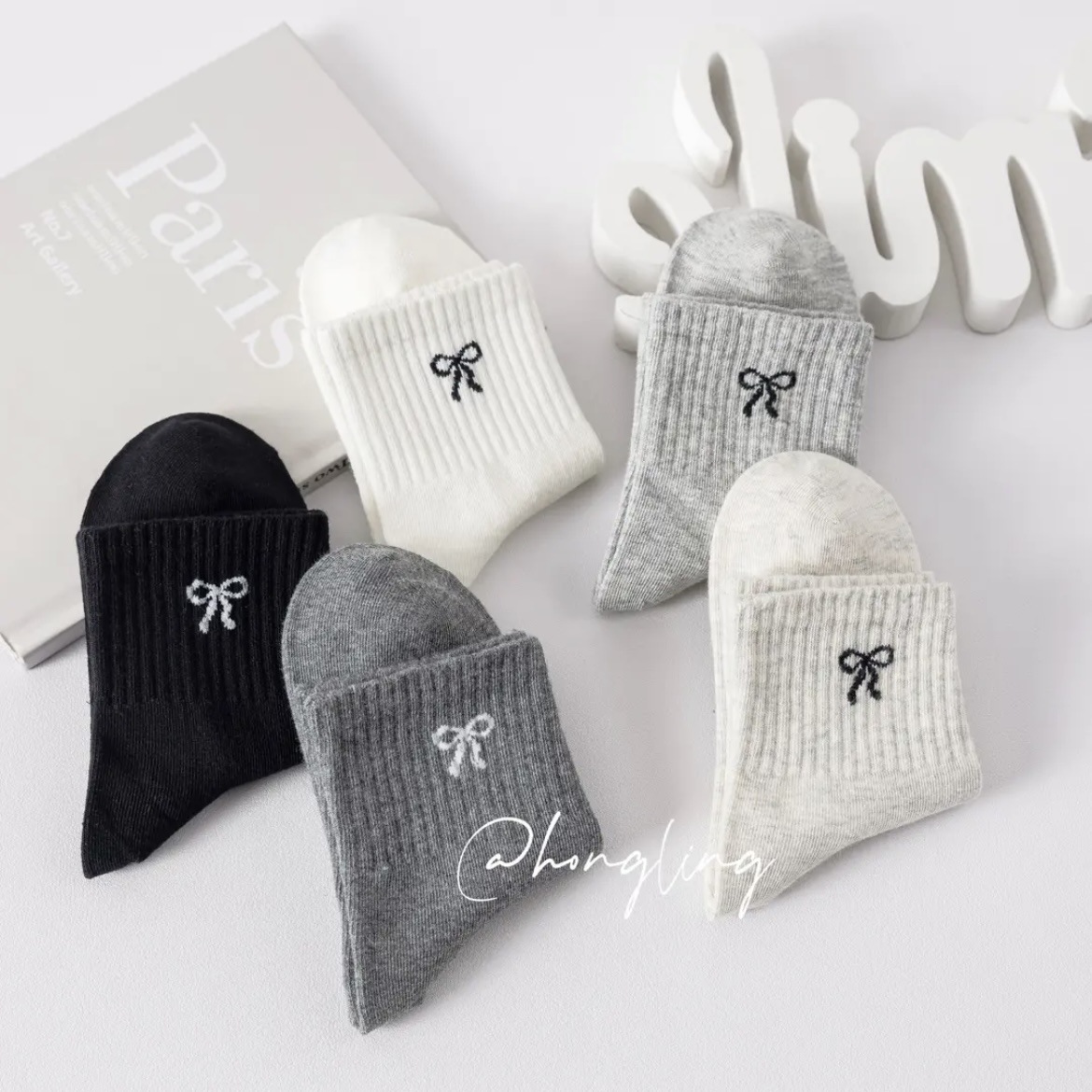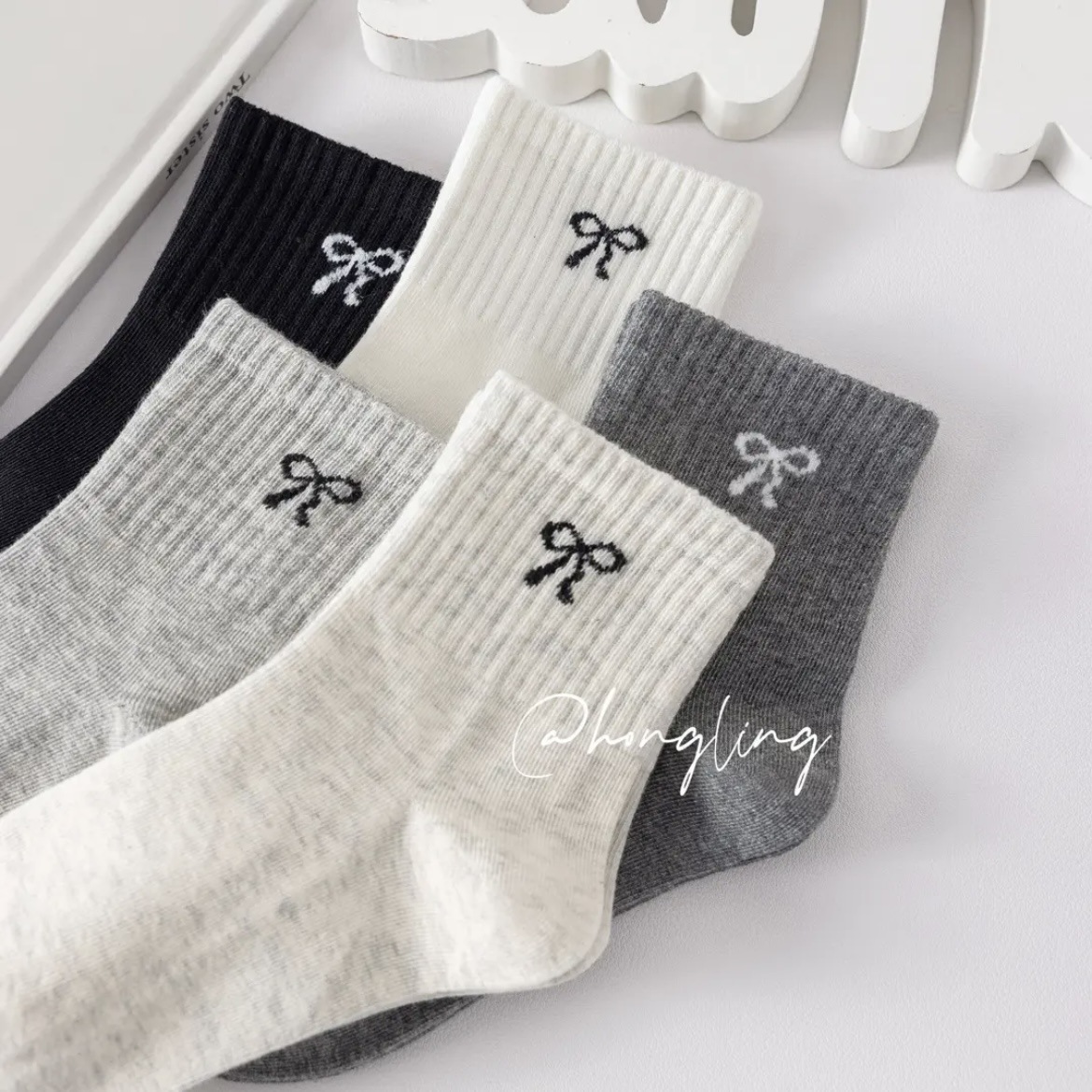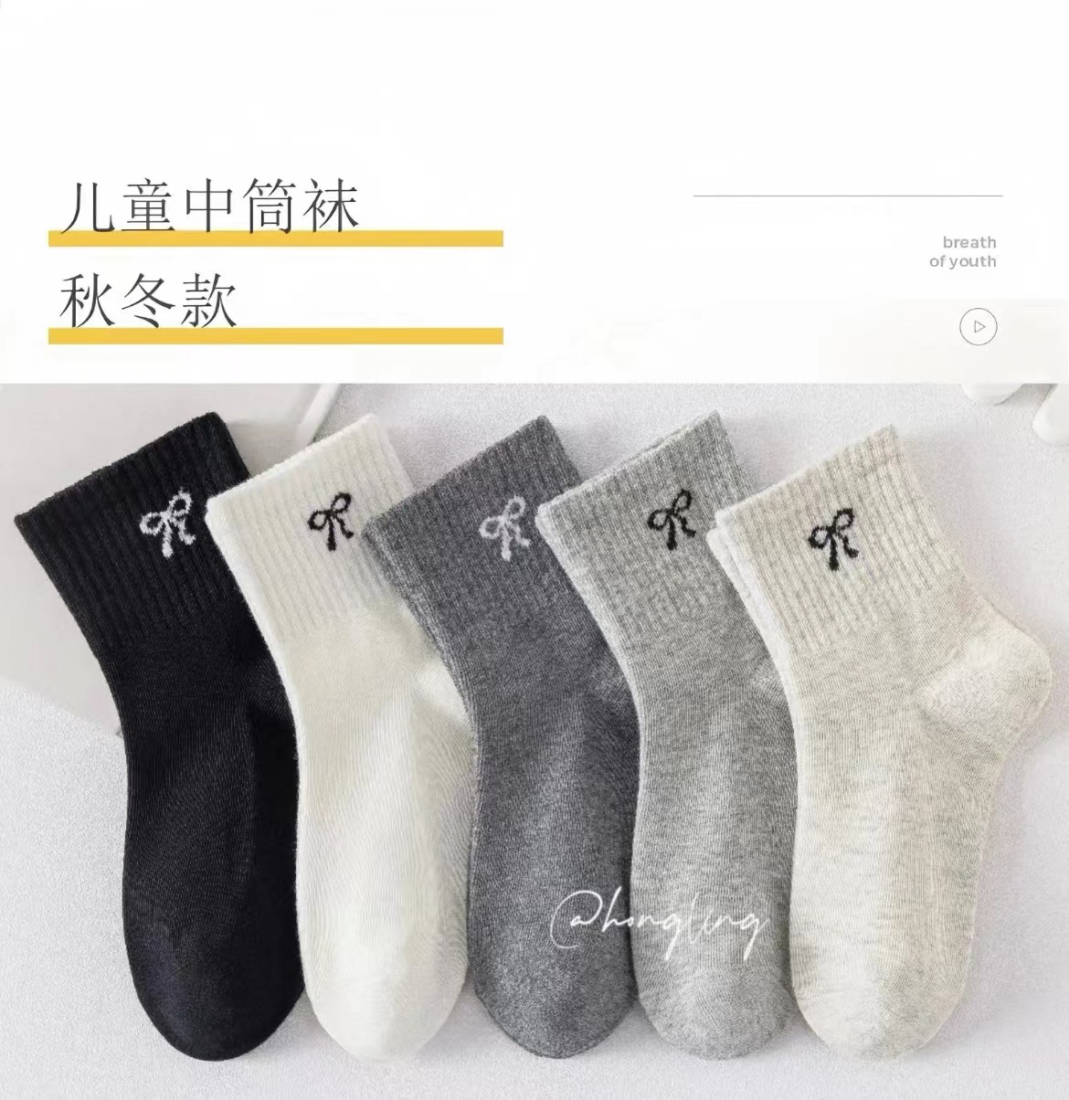 어린이 양말 가을과 겨울 새로운 중간 길이 양말 간단한 단색 활 패션 여자 학생 양말 중간 길이 양말