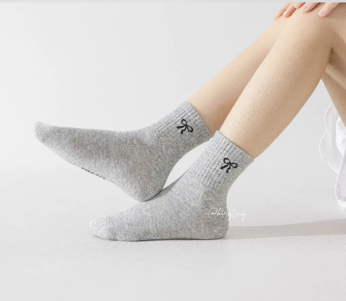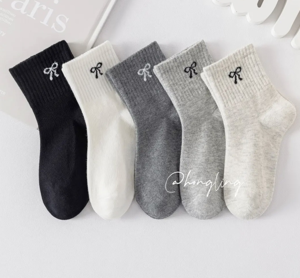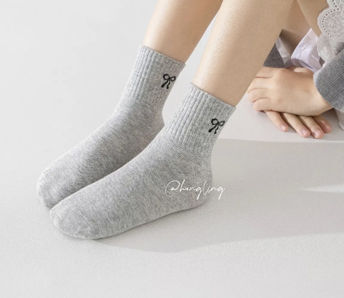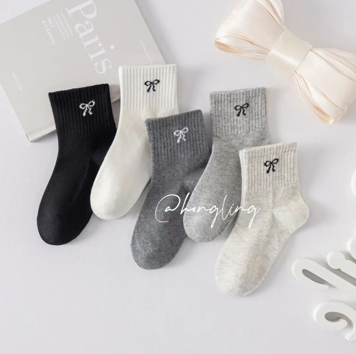 어린이 양말 가을과 겨울 새로운 중간 길이 양말 간단한 단색 활 패션 여자 학생 양말 중간 길이 양말