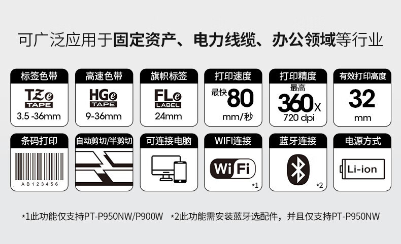 형제 라벨링 기계 PT-P900 고정 자산 라벨 프린터 36mm 자체 접착 데스크탑 사무실 재고스토어 가기