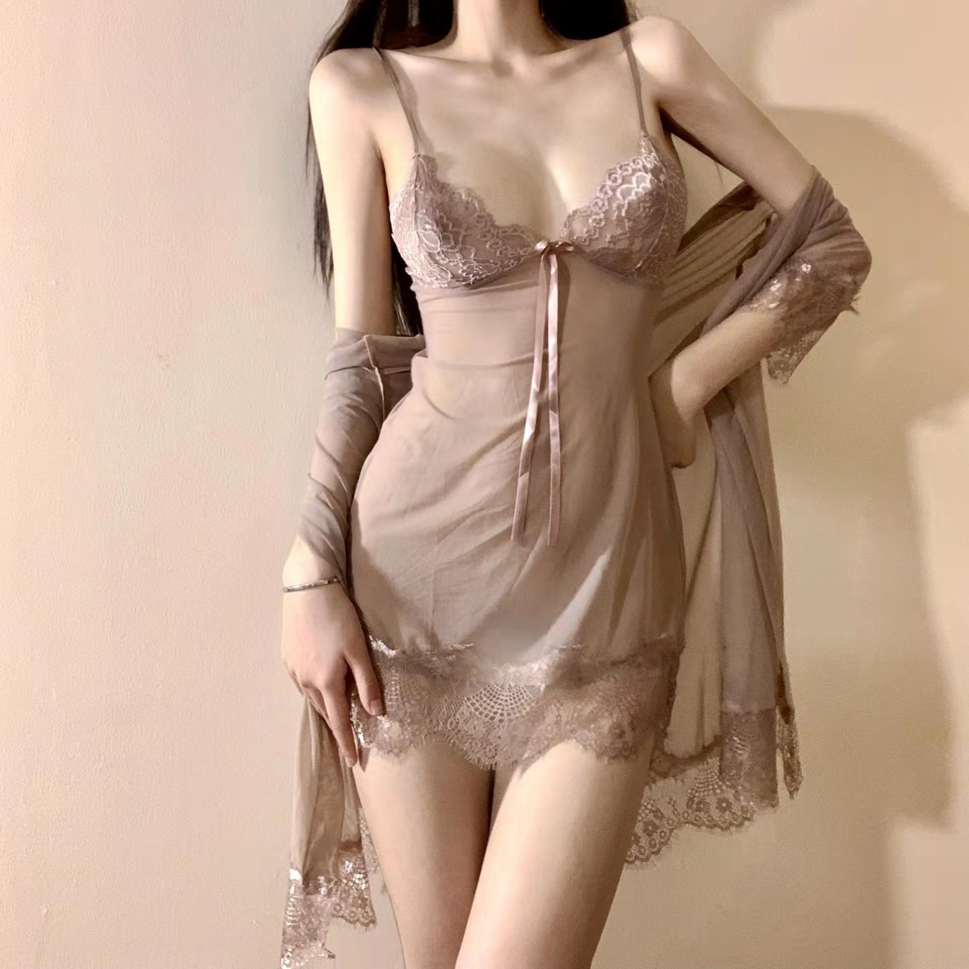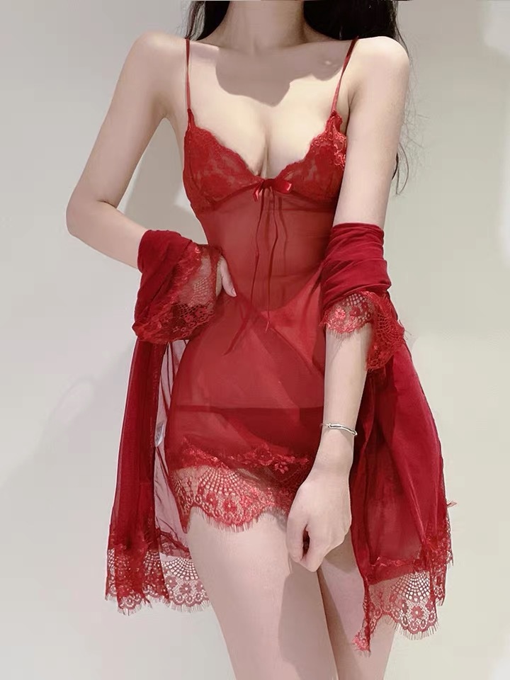 플러스 사이즈 섹시한 속옷 홈 잠옷 열정 세트 섹시한 투명 비 이륙 잠옷 유니폼 유혹 3 피스 세트
