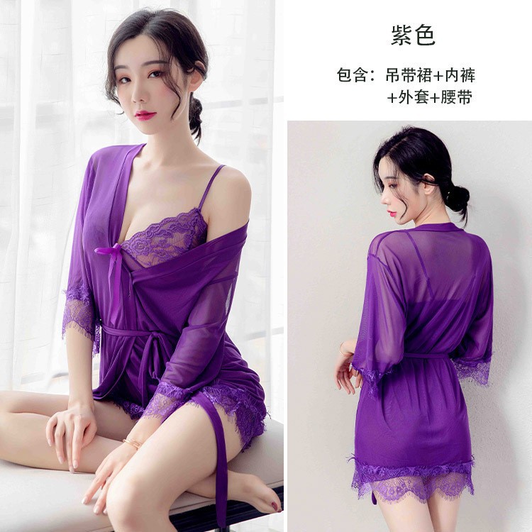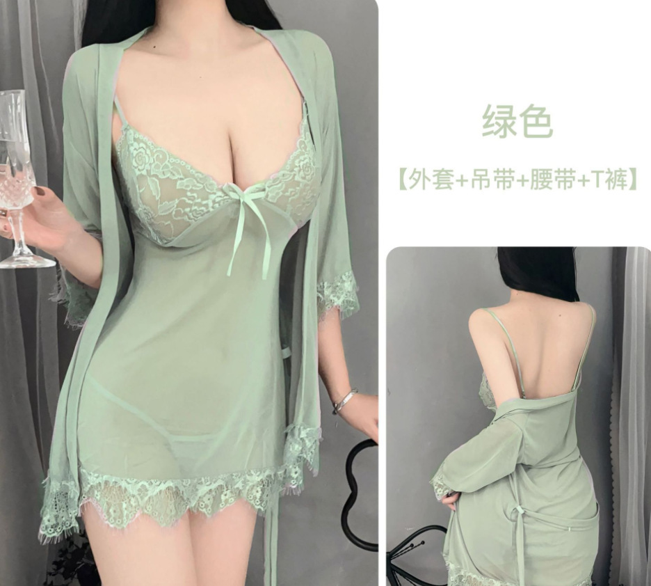 플러스 사이즈 섹시한 속옷 홈 잠옷 열정 세트 섹시한 투명 비 이륙 잠옷 유니폼 유혹 3 피스 세트스토어 가기