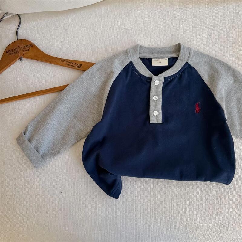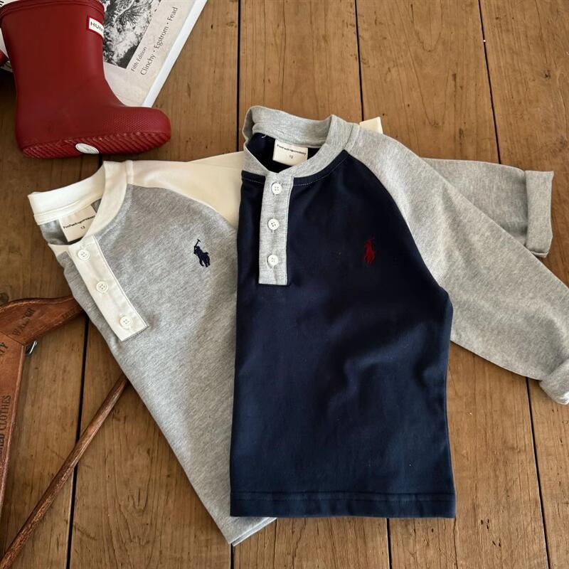 Ningli 어린이 티셔츠 긴팔 소년 봄, 가을 새로운 바닥 셔츠 유행 브랜드 베이비 컬러 매칭 폴로 셔츠 여성 면화스토어 가기