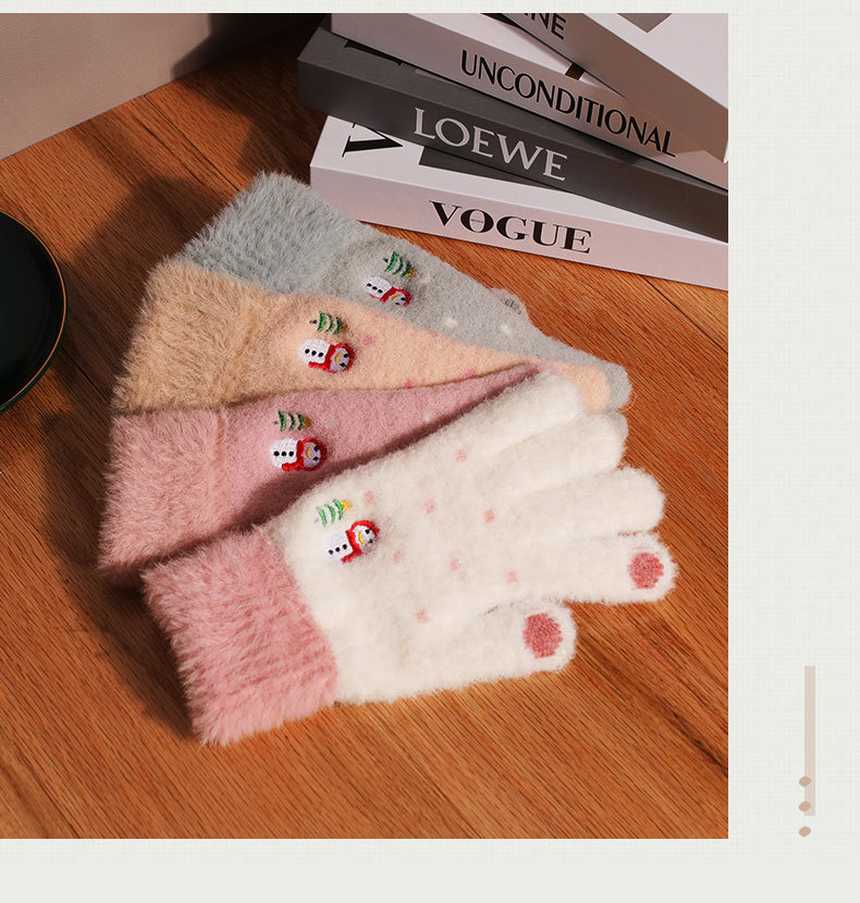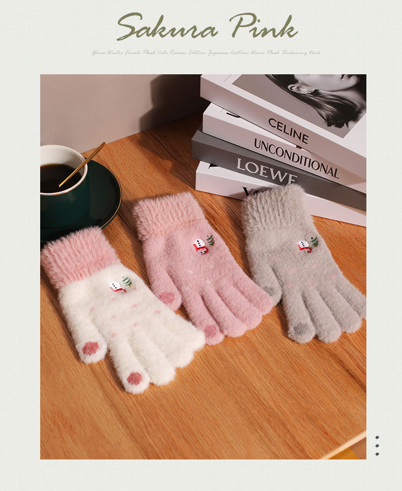 터치 스크린 장갑 겨울 여성 Ins 귀여운 기모 따뜻한 방한 부드러운 소녀 사이클링 학생 5 손가락 사이클링 가을과 겨울스토어 가기