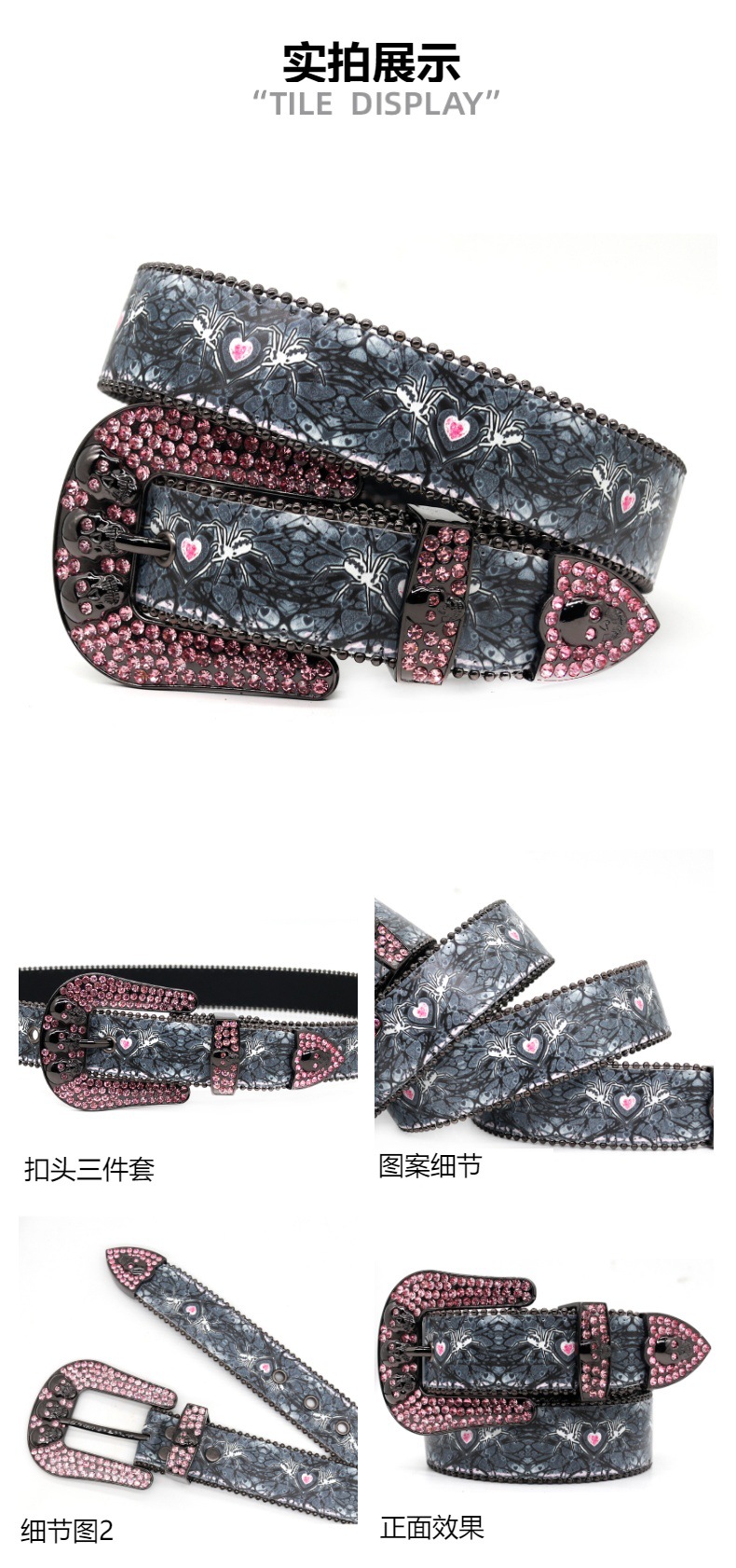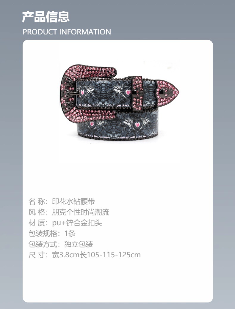 국경 인쇄 모조 다이아몬드 벨트 여성의 고급 느낌 벨트 남성 두개골 합금 핀 버클 패션 펑크 성격 트렌드