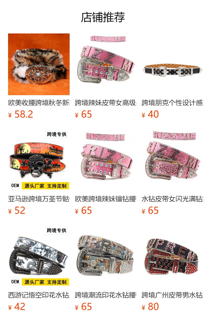 국경 인쇄 모조 다이아몬드 벨트 여성의 고급 느낌 벨트 남성 두개골 합금 핀 버클 패션 펑크 성격 트렌드스토어 가기