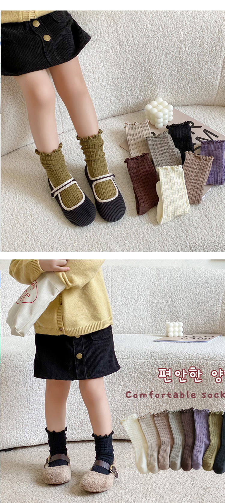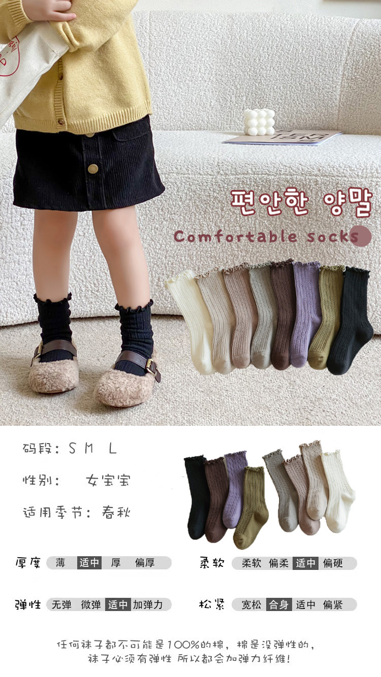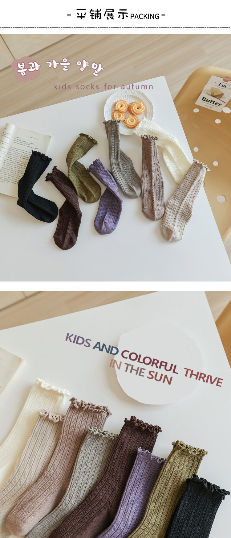 어린이 양말 제조 업체 도매 봄과 가을 레이스 소녀 튜브 양말 여성 아기 한국 파일 양말 단색면 양말스토어 가기