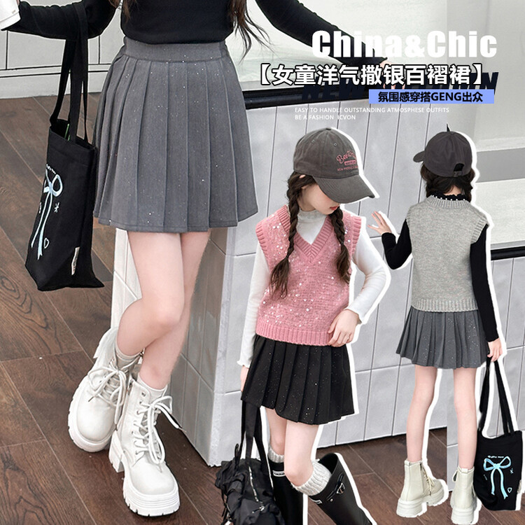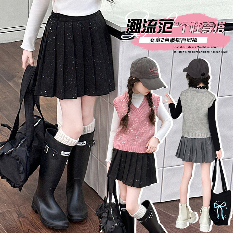 여자 JK 주름 치마 학업 스타일 스커트 소녀 달콤한 치마 실버 치마 안전 바지 짧은 치마 2024
