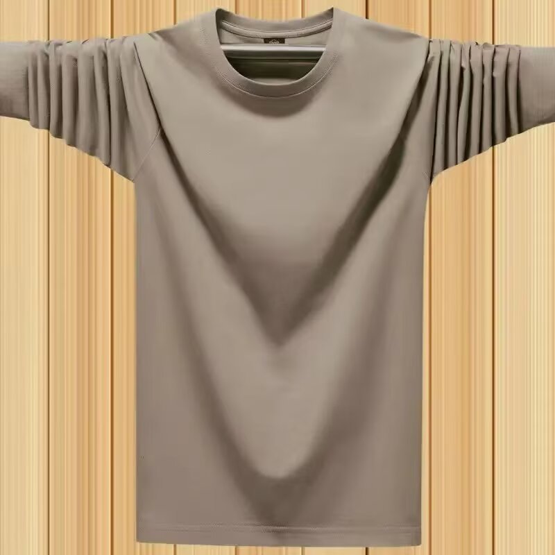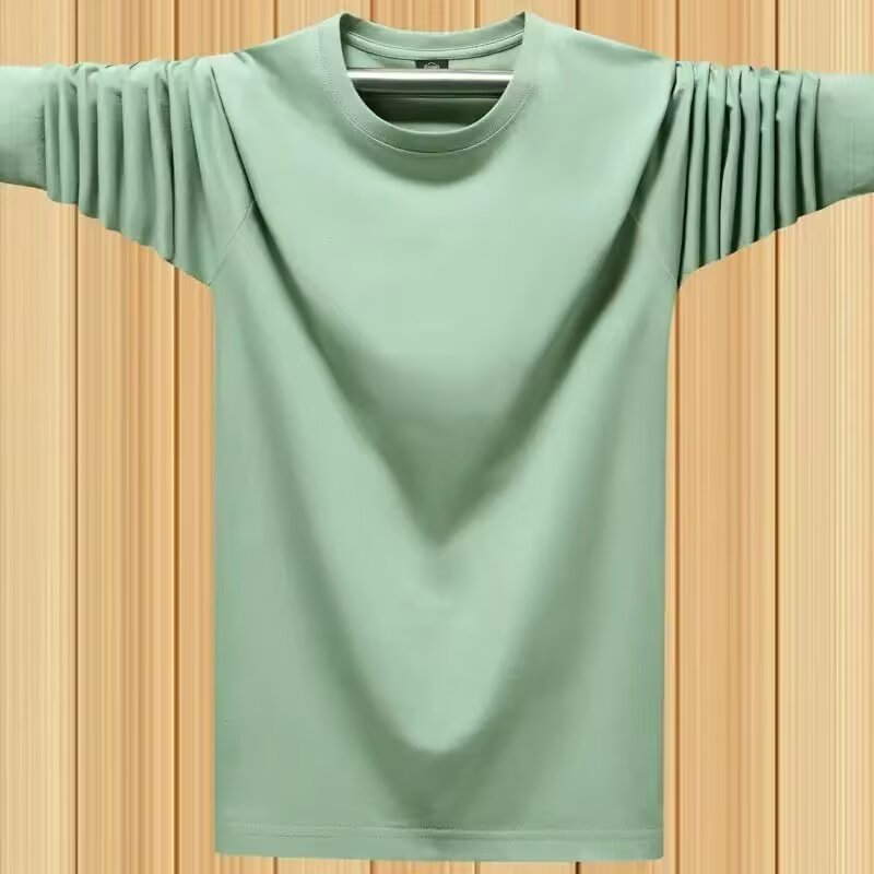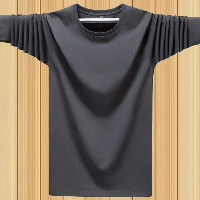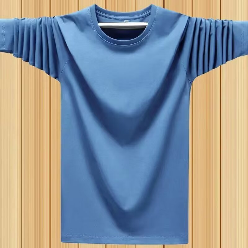 봄과 가을의 새로운 내가을 옷 남성용 티셔츠베이스 셔츠 봄과 가을 단색 긴 소매 티셔츠 남성용 둥근 목 플러스 사이즈 단색스토어 가기