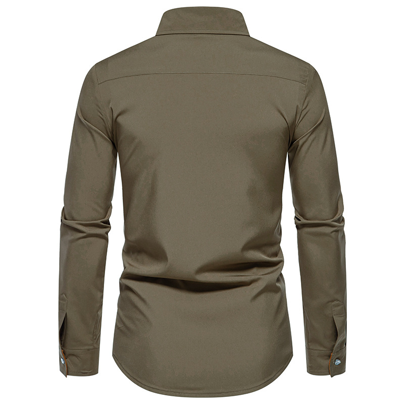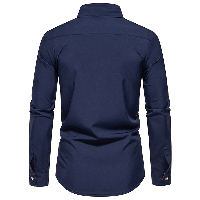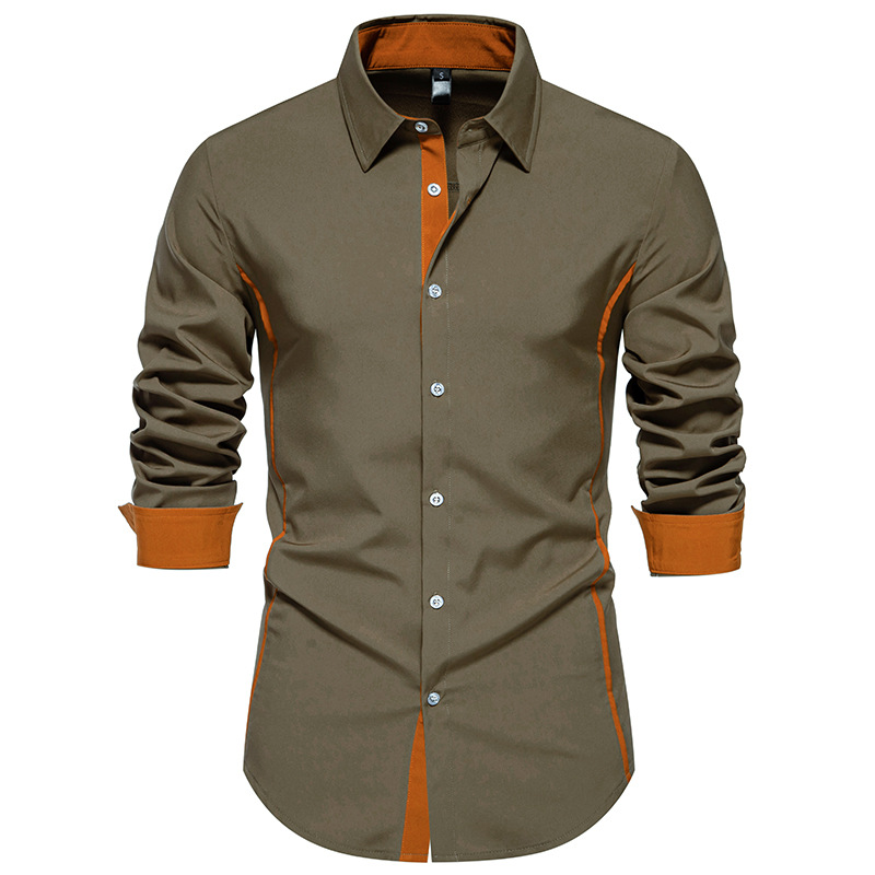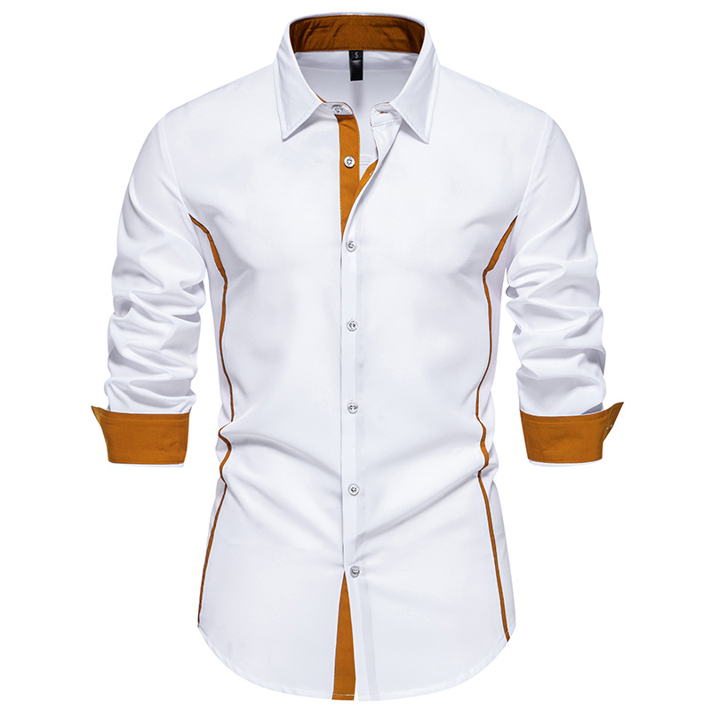 아마존 남성 색상 대비 삼각형 칼라 긴 소매 셔츠 A367