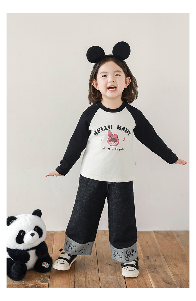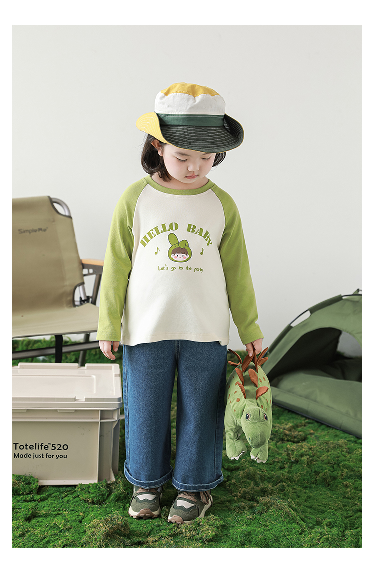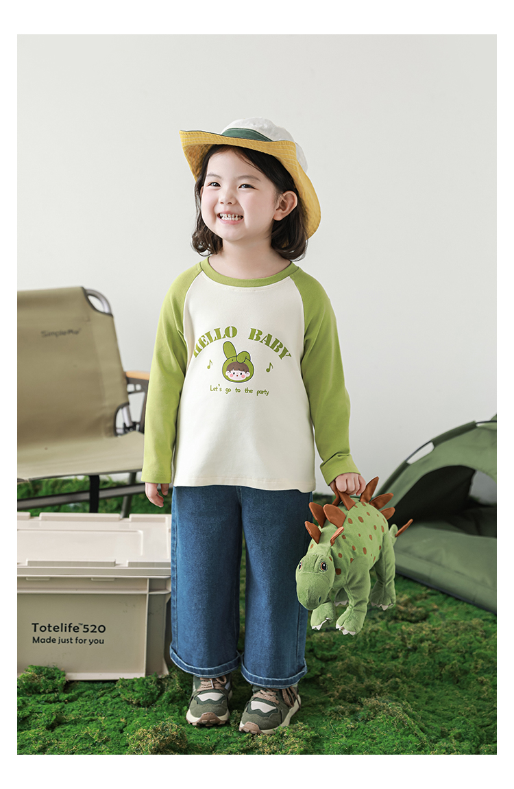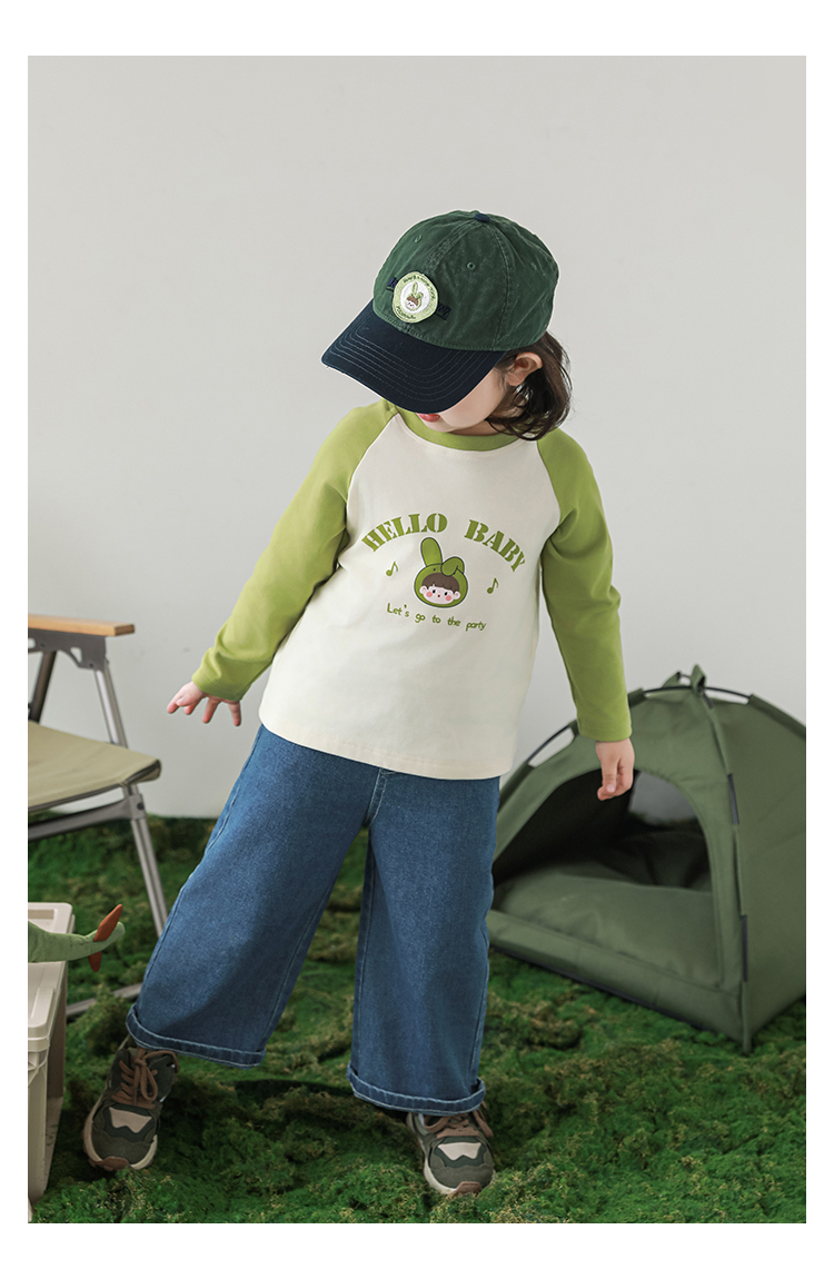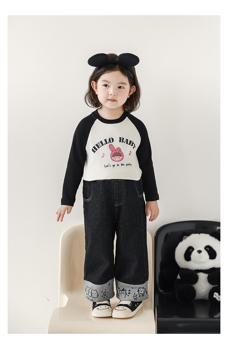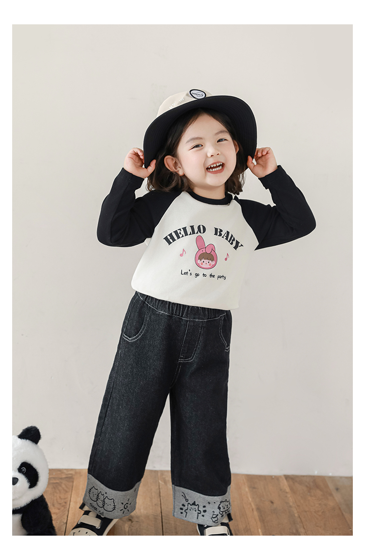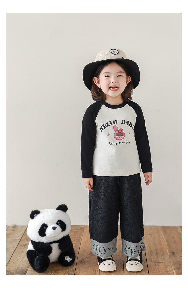 Wuri Bos One Girl Anan Girl 프린트 어깨 티셔츠 슬림 핏 2024 가을 대비 캐주얼 탑 트렌디스토어 가기