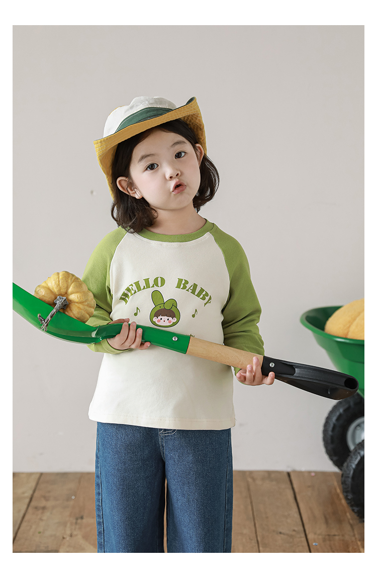 Wuri Bos One Girl Anan Girl 프린트 어깨 티셔츠 슬림 핏 2024 가을 대비 캐주얼 탑 트렌디