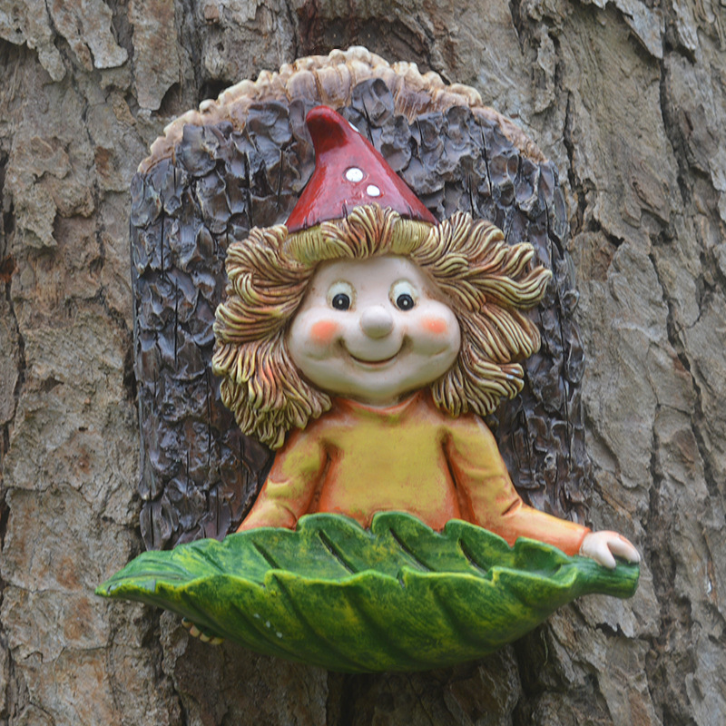 국경 간 새로운 야외 정원 코트야드 엘프 아기 소녀 잎 교수형 보드 새 피더 장식 수지 장식품스토어 가기