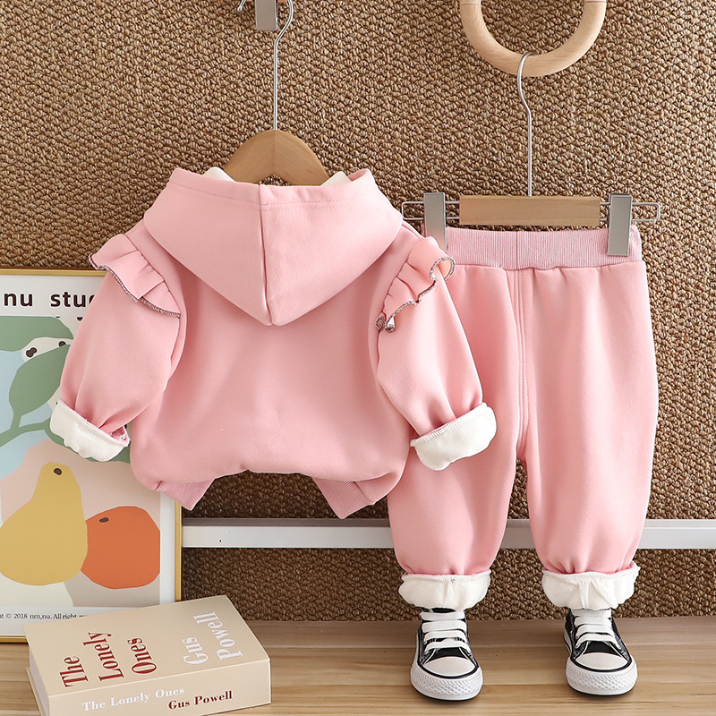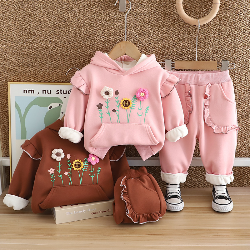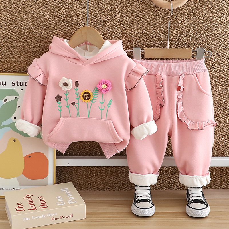 2024 가을과 겨울 아동복 새로운 한국 어린이 세트 소녀 작은 꽃 긴 소매 아기 투피스 가을 패션