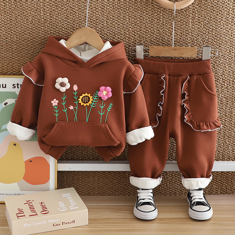 • yt3 구역 1줄 작은 꽃 플러스 벨벳 슈트 브라운