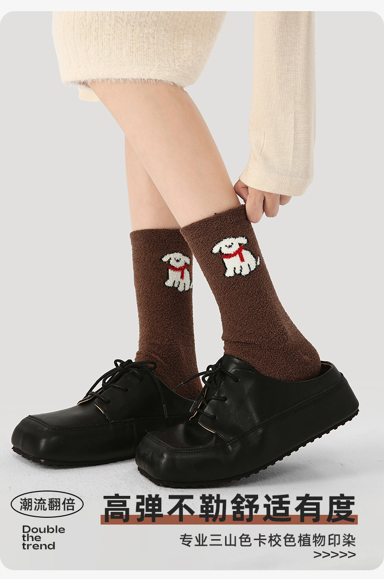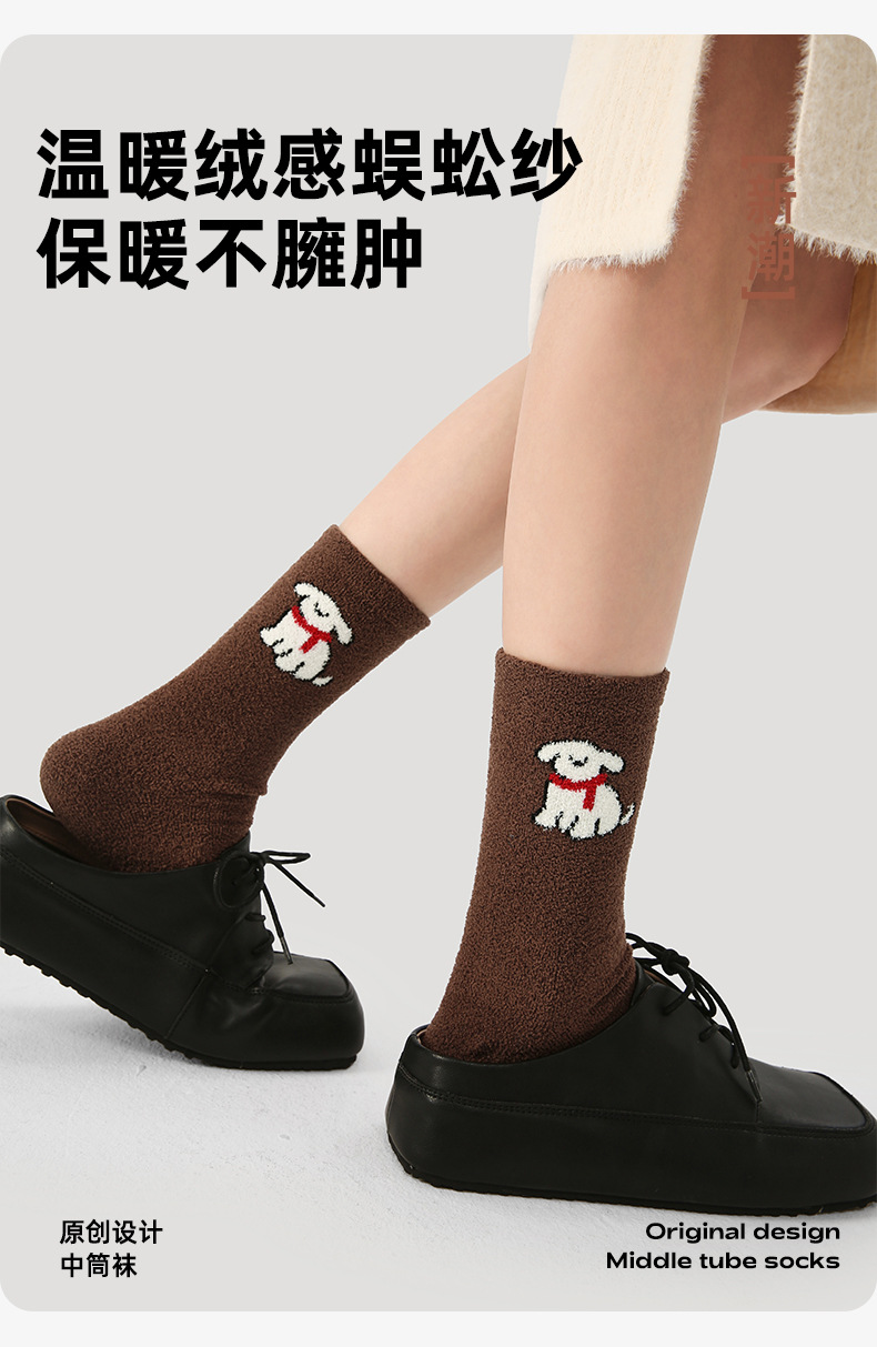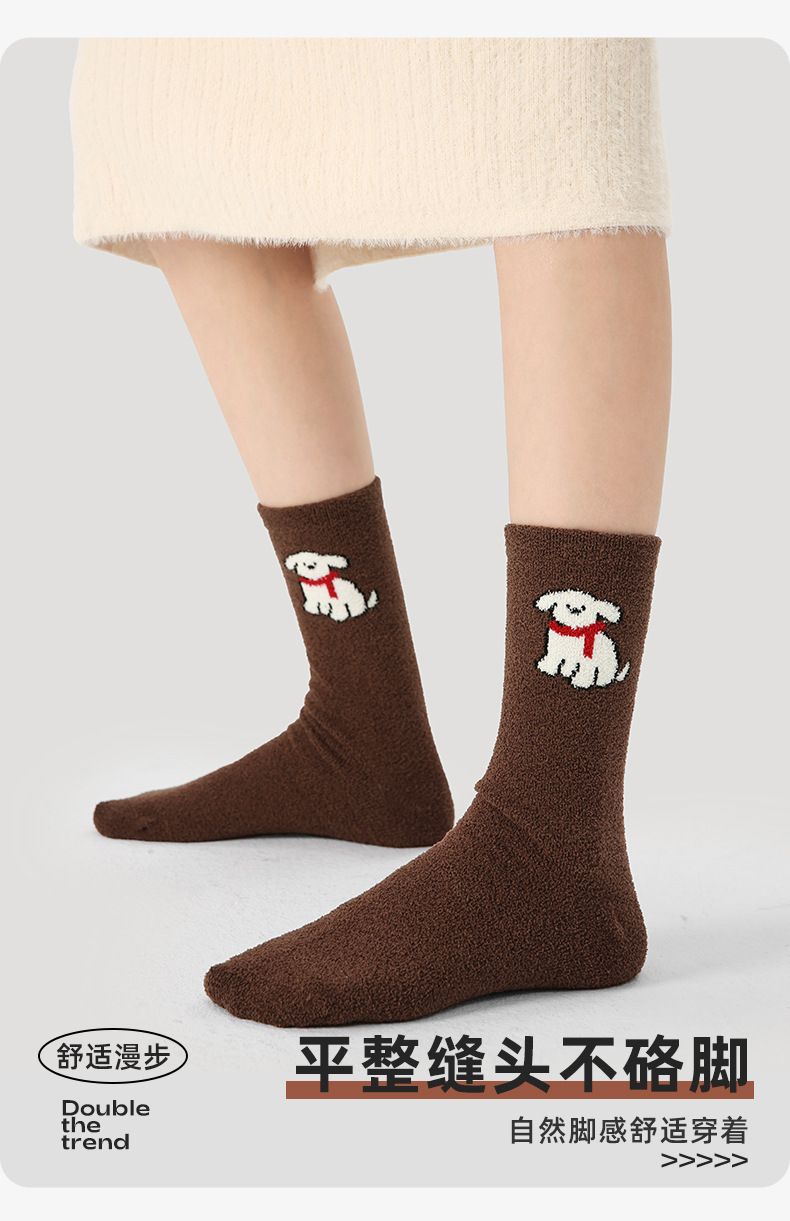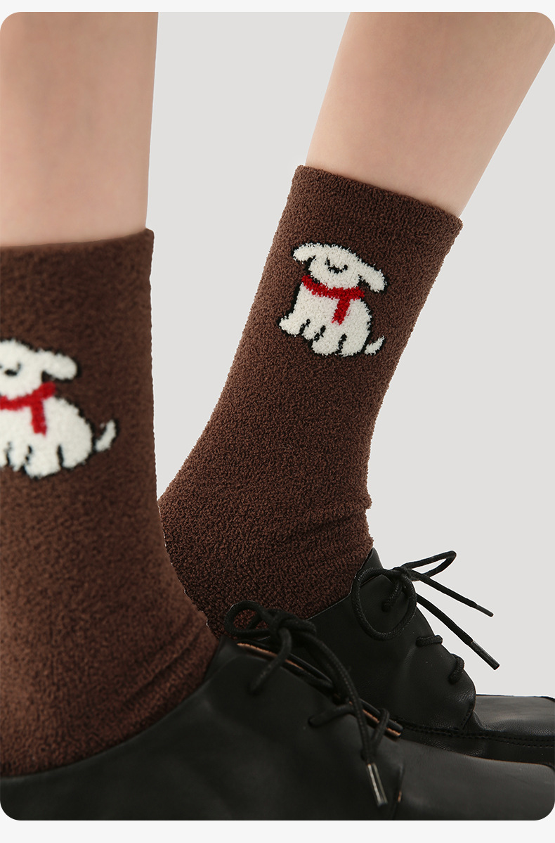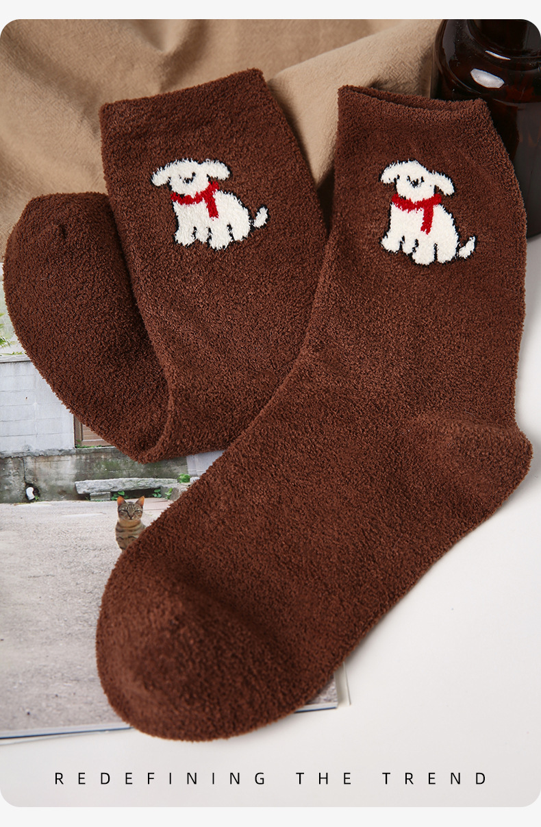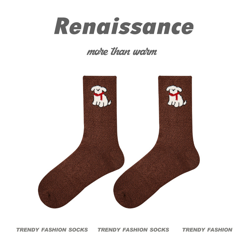 르네상스 양말 여성의 가을과 겨울 기모 두꺼운 만화 흰 강아지 나는 조커 모방 밍크 벨벳 튜브 양말스토어 가기