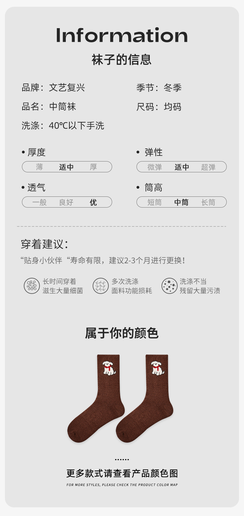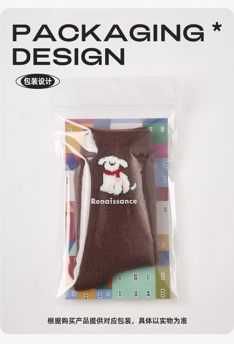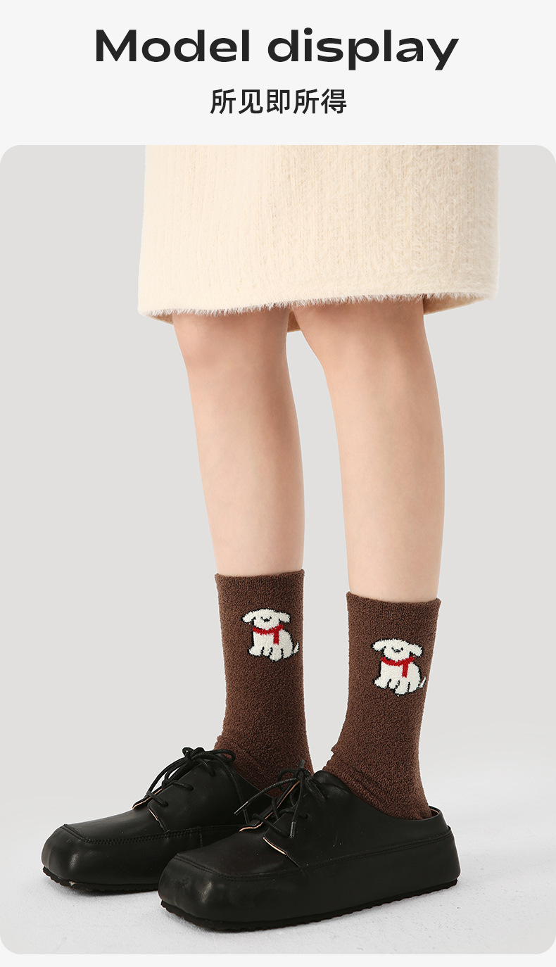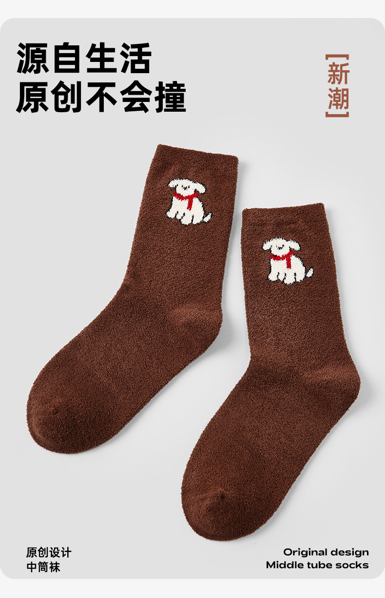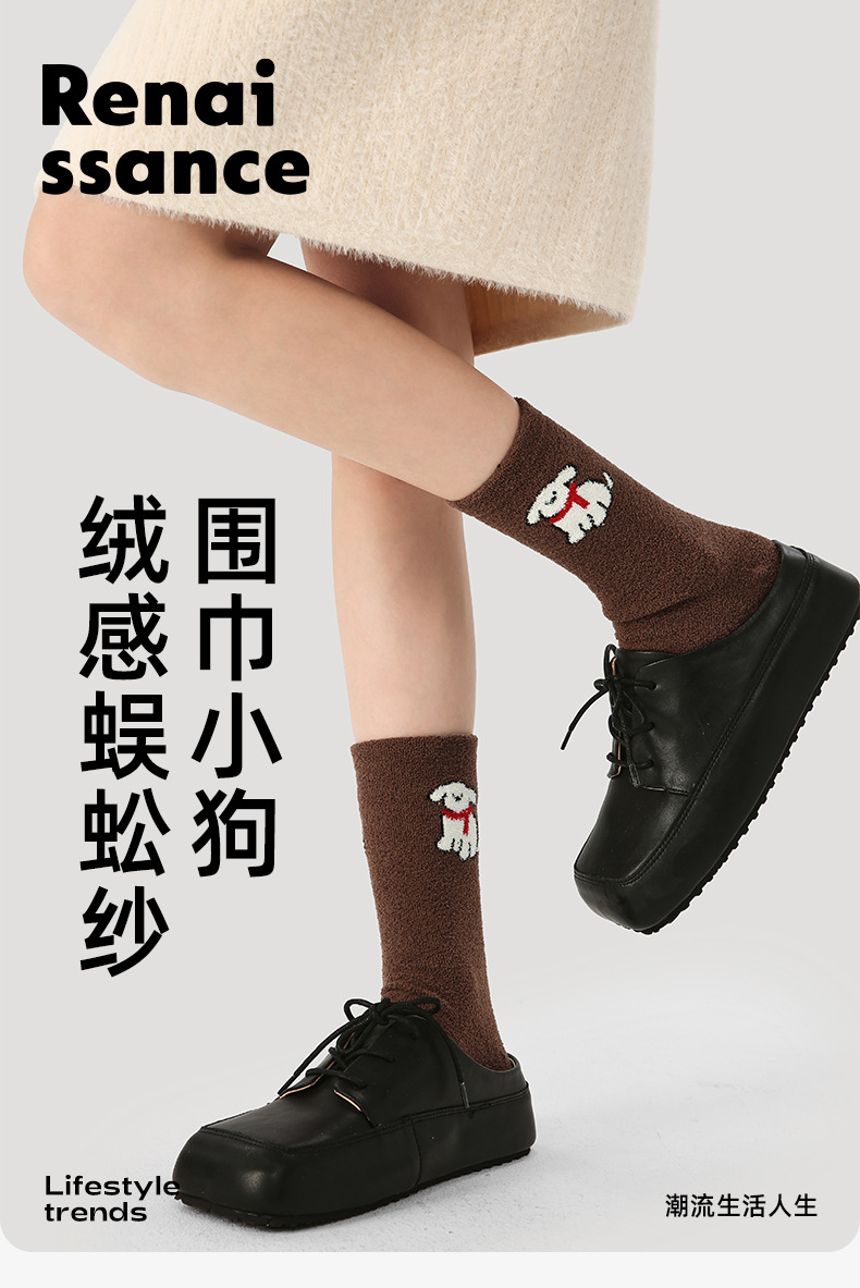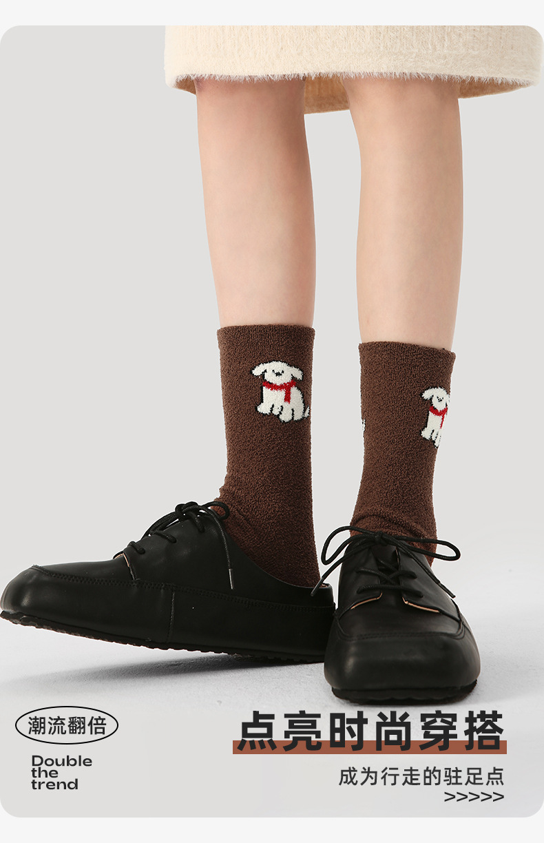 르네상스 양말 여성의 가을과 겨울 기모 두꺼운 만화 흰 강아지 나는 조커 모방 밍크 벨벳 튜브 양말스토어 가기