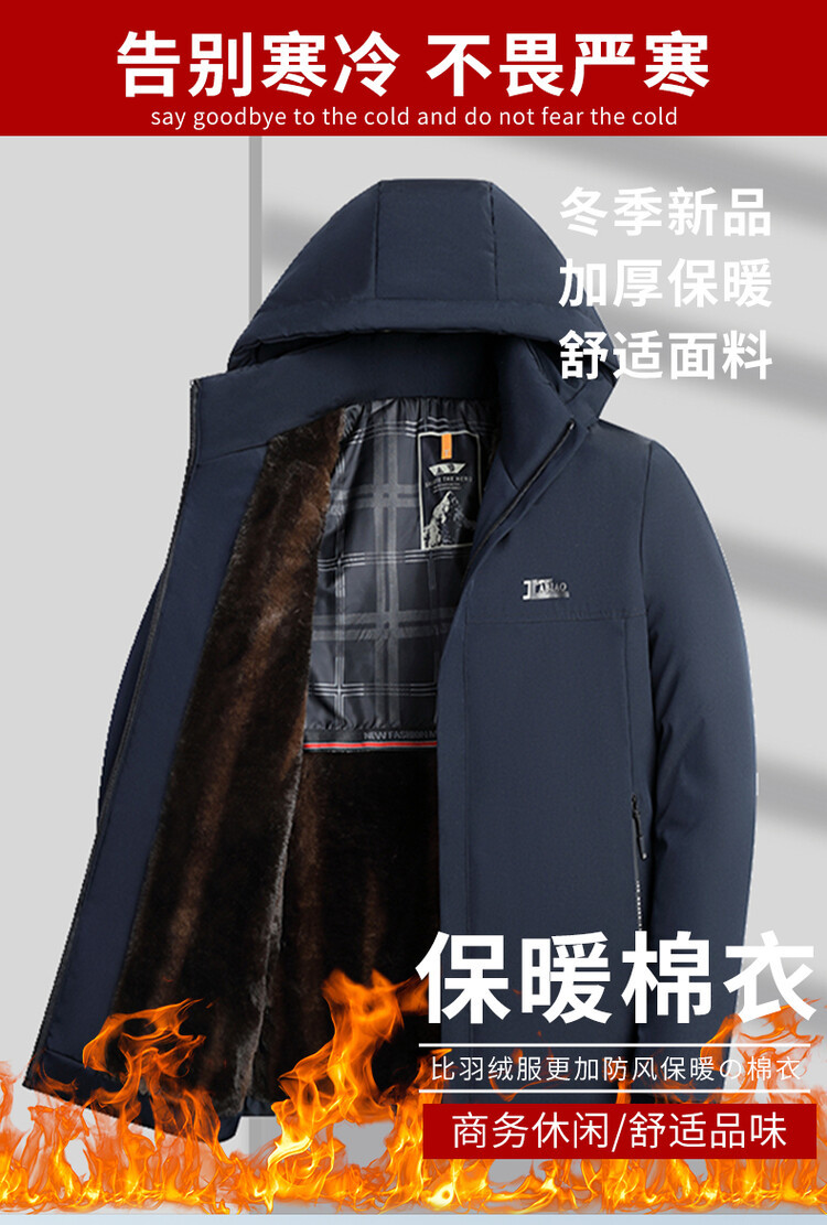 기모 두꺼운 겨울 코트 남성용 코튼 패딩 코트, 이동식 모자 다운 코튼 패딩 코트 아빠의 코튼 패딩 코트 중년 남성 파커스토어 가기