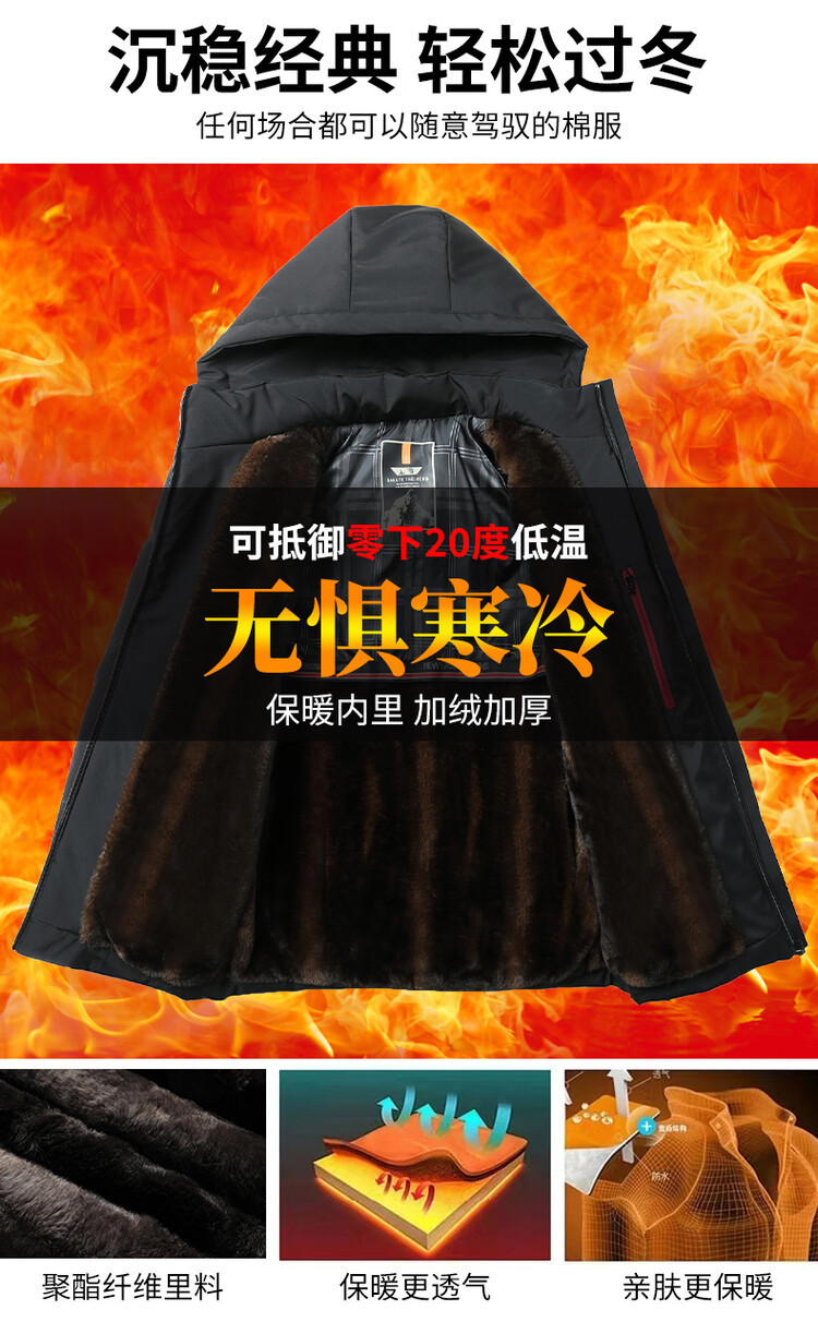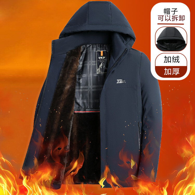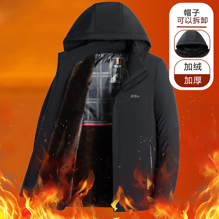 기모 두꺼운 겨울 코트 남성용 코튼 패딩 코트, 이동식 모자 다운 코튼 패딩 코트 아빠의 코튼 패딩 코트 중년 남성 파커