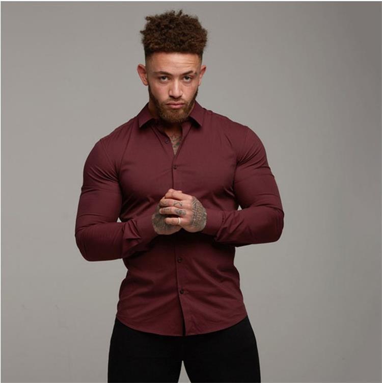 근육 남자의 피트니스 긴팔 칼라 셔츠 얇은 컬러 스포츠 캐주얼 카디건 비즈니스 비철 셔츠 트렌디