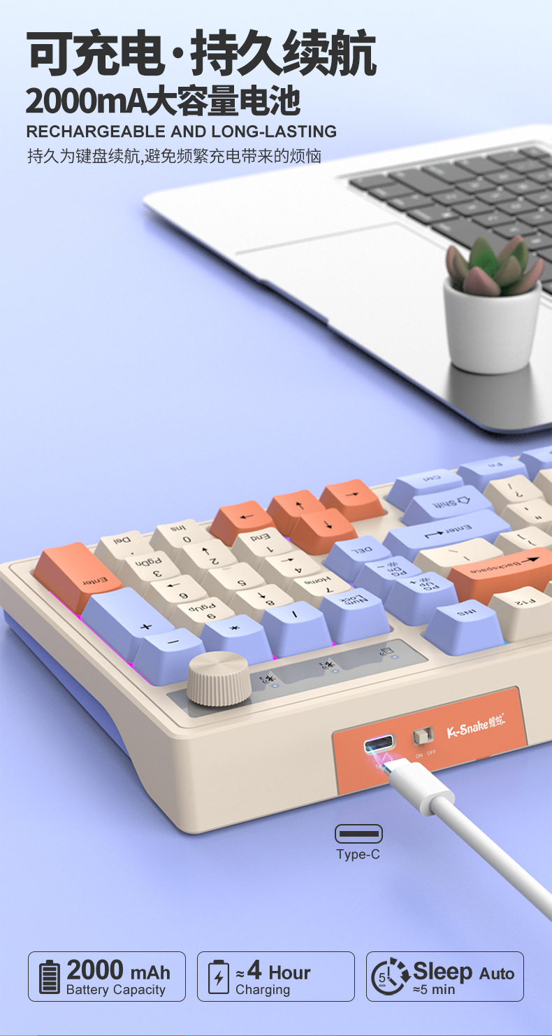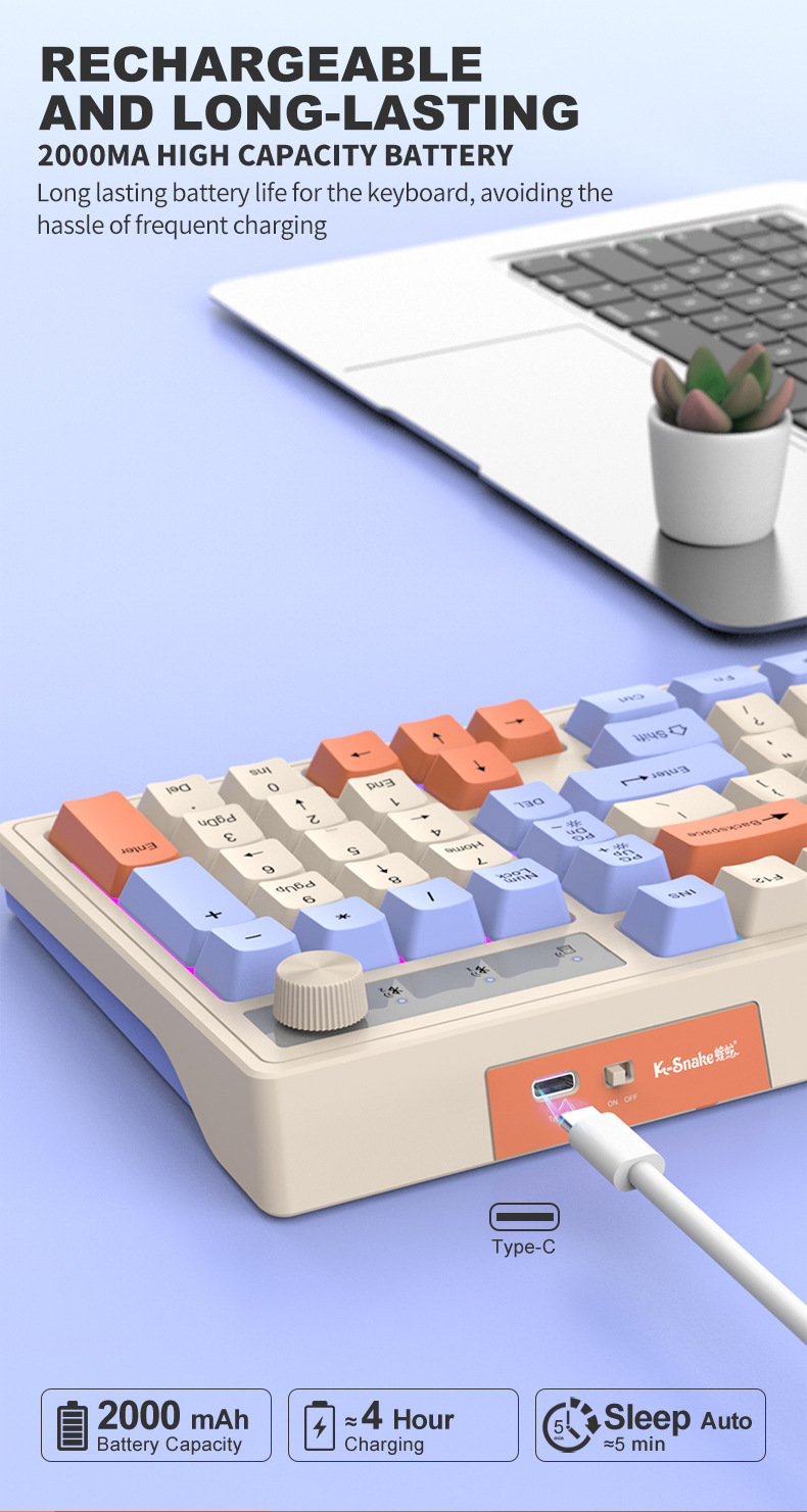 Viper K98 무선 블루투스 듀얼 모드 기계적 느낌 키보드 패션 컬러 매칭 오피스 빛나는 게임 컴퓨터 키보드